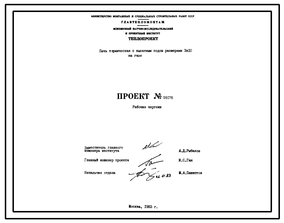 Проект 59176 Печь термическая с выкатным подом размерами 3х10 м, на газе