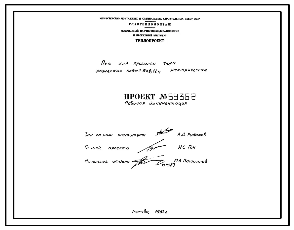 Проект 59362 Печь для прокалки форм размерами пода 2,9х8,12 м, электрическая