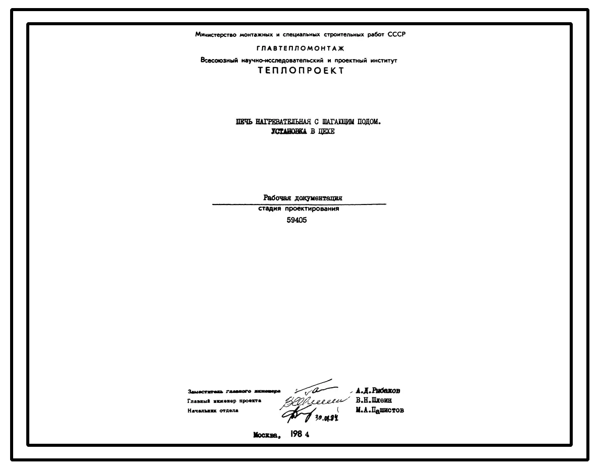 Проект 59405 Печь нагревательная с щигающим подом. Установка в цехе