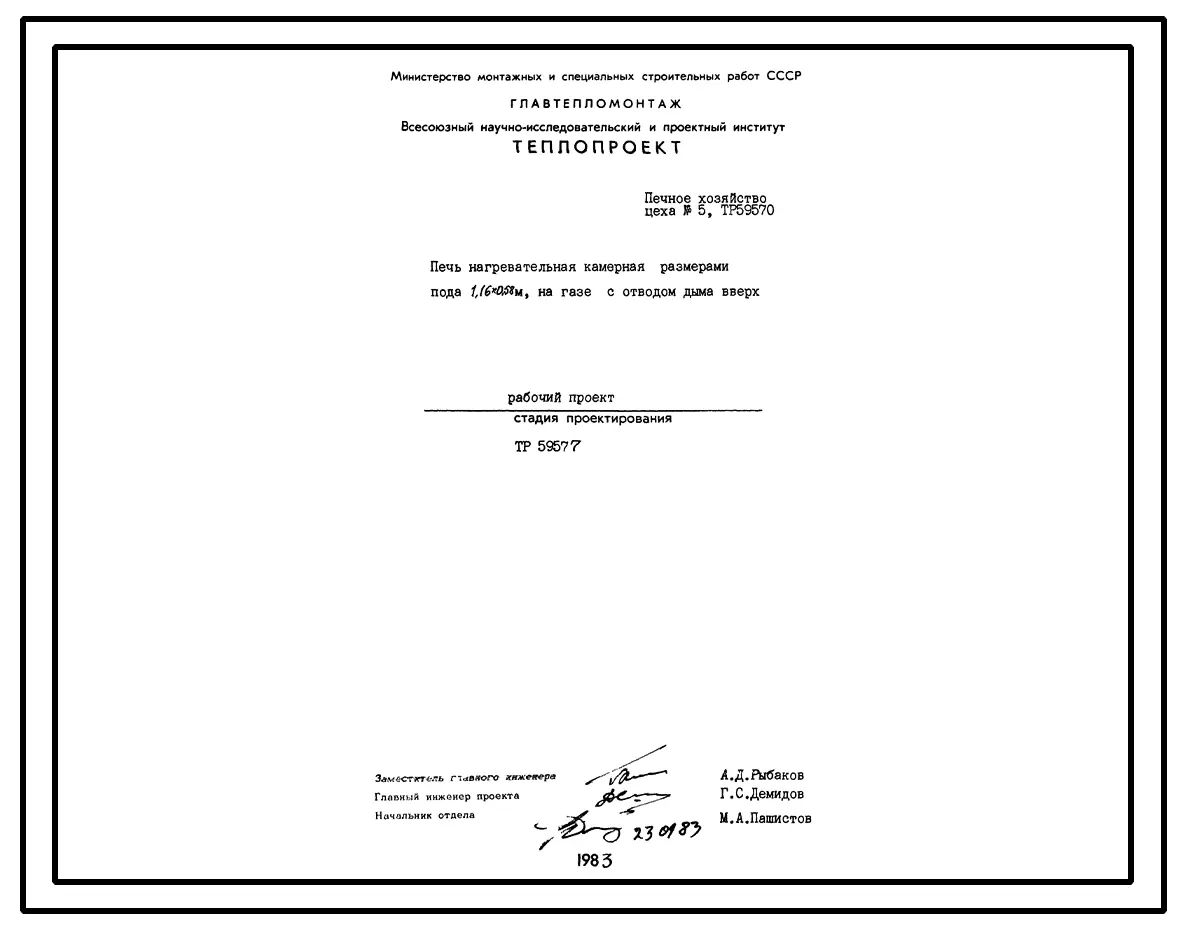 Проект 59577 Печь нагревательная камерная размерами пода 1,16х0,58 м, на газе с отводом дыма вверх