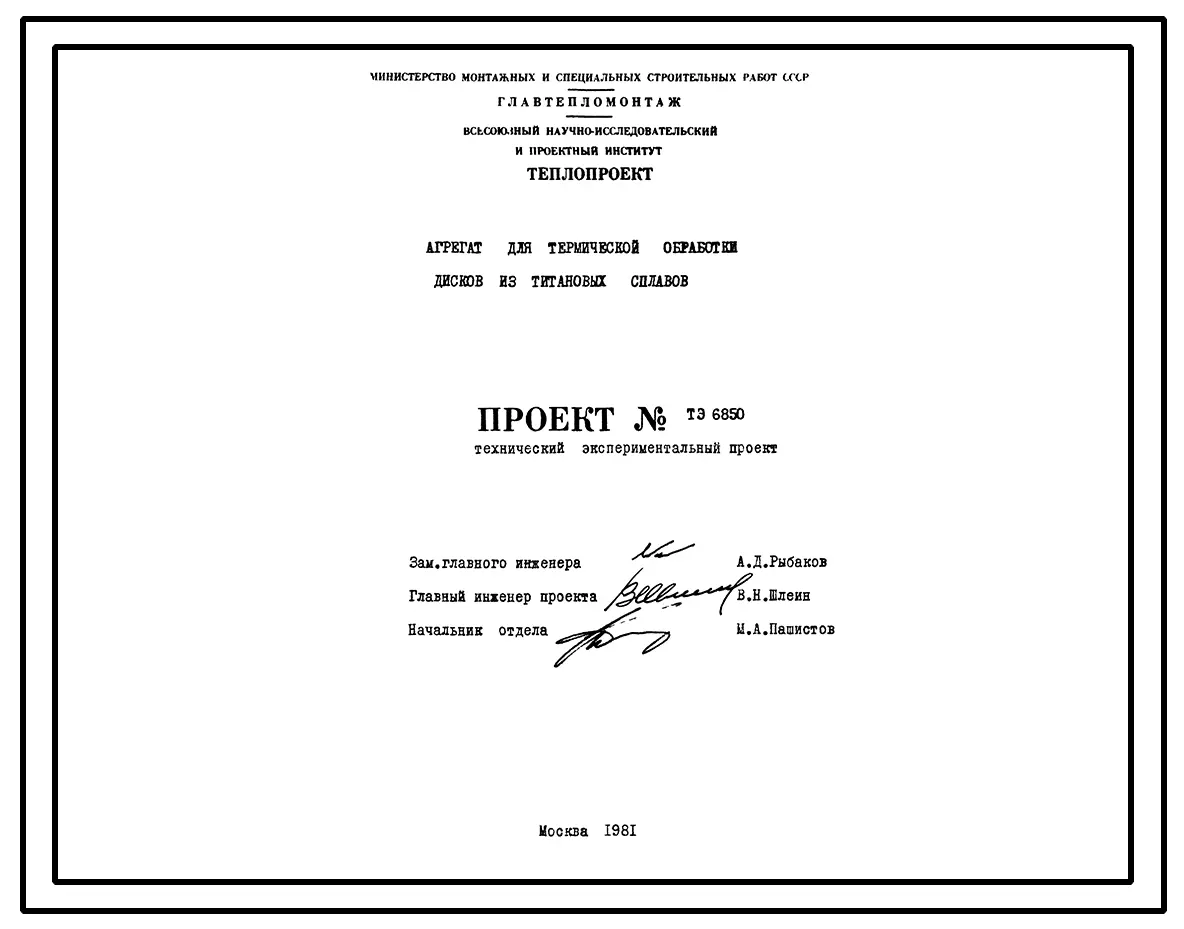 Проект 6850 Агрегат для термической обработки дисков из титановых сплавов