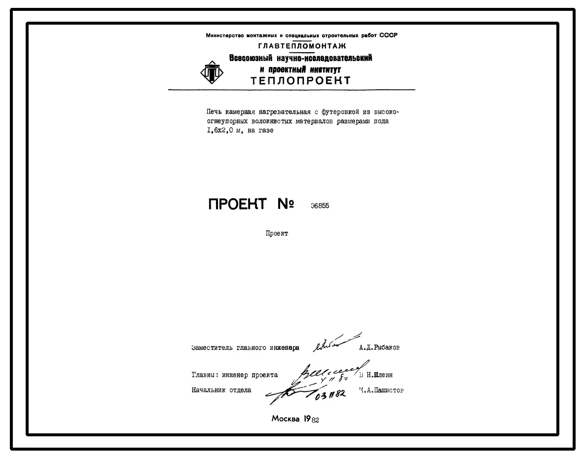 Проект 6855 Печь камерная нагревательная с футеровкой из высокоогнеупорных волокнистых материалов размерами пода 1,6х2,0 м, на газе