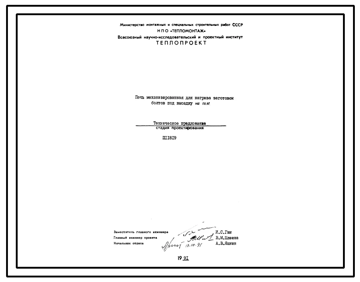 Проект П11819 Печь механизированная для нагрева заготовок болтов под высадку на газе