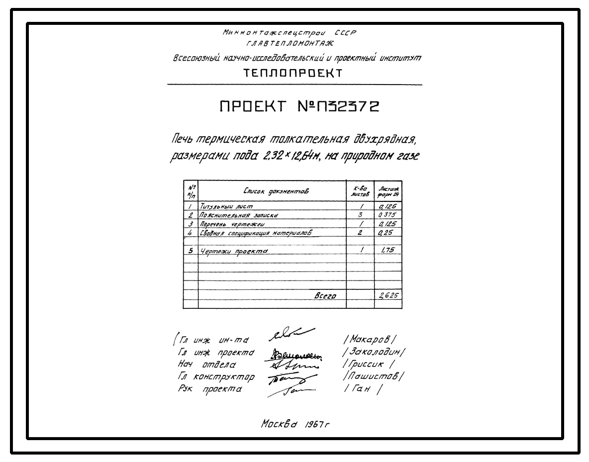 Проект П32372 Печь термическая толкательная двухрядная размерами пода 2,32х12,64 м, на природном газе
