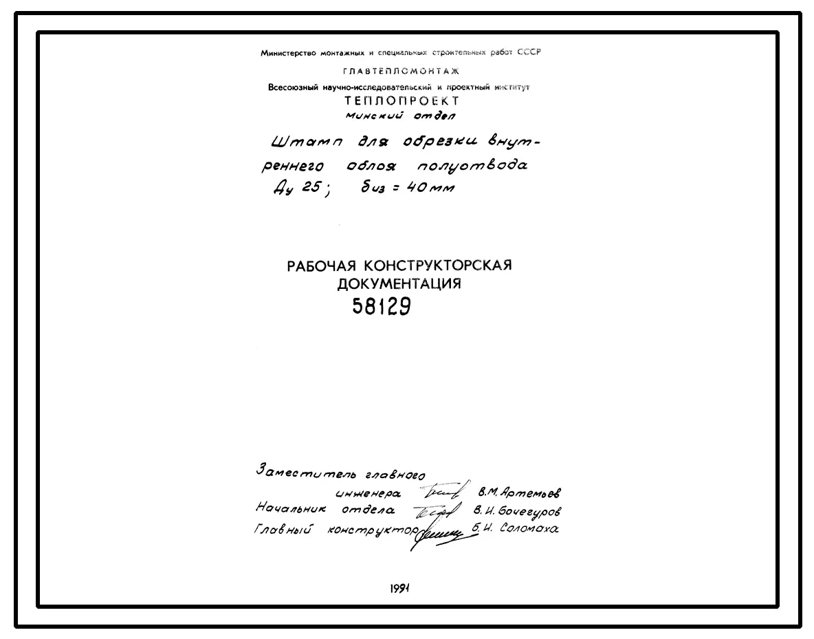 Проект 58129 Штамп для обрезки внутреннего облоя полуотвода Ду25; δиз=40 мм