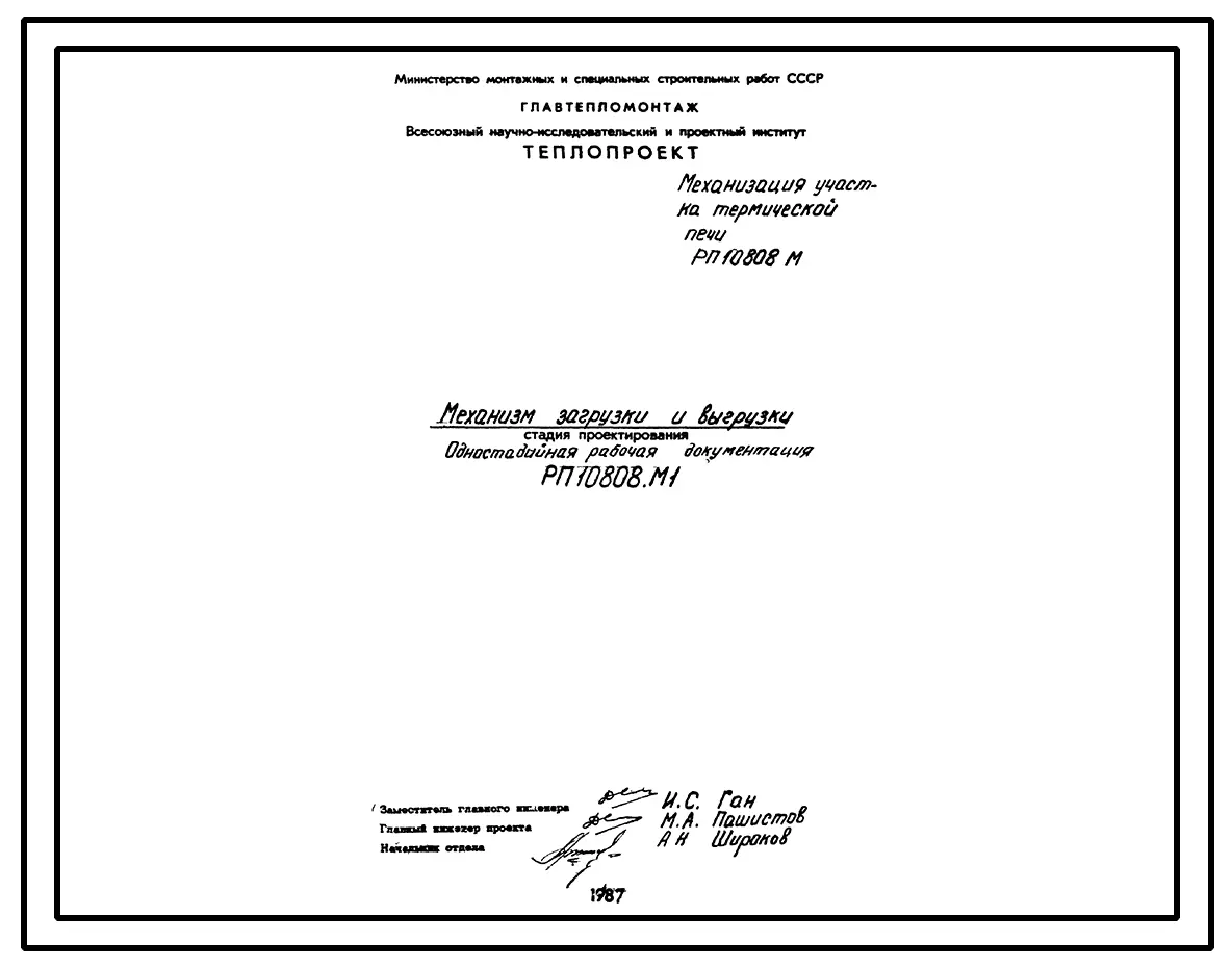 Проект РП10808.М1 Механизм загрузки и выгрузки