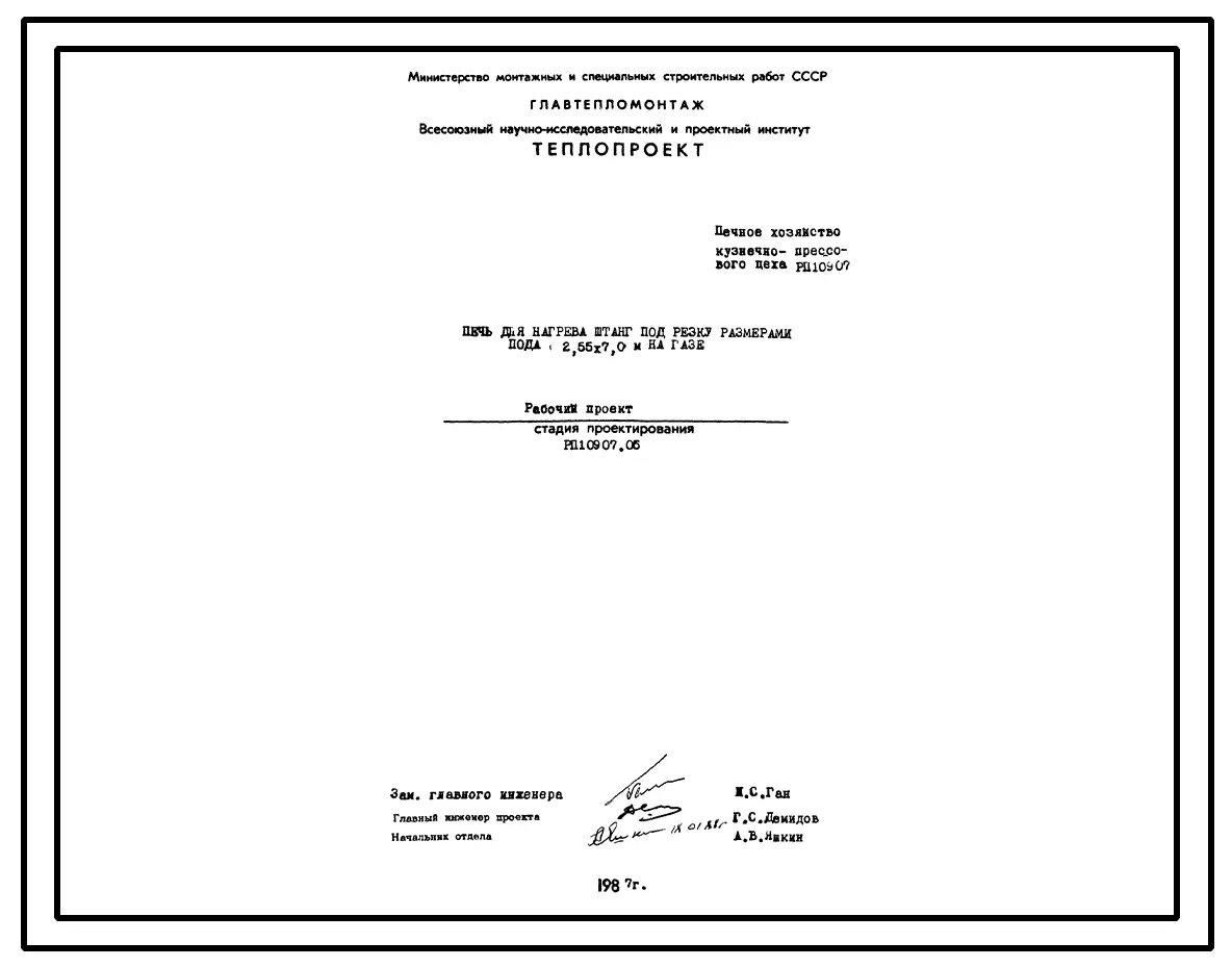 Проект РП10907.06 Печь для нагрева штанг под резку на газе размерами пода 2,55х7,0 м, на газе