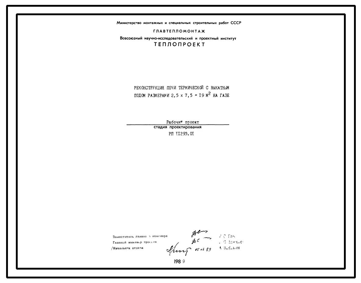 Проект РП11293.01 Печь термическая с выкатным подом размерами 2,5х7,5=19 м², на газе