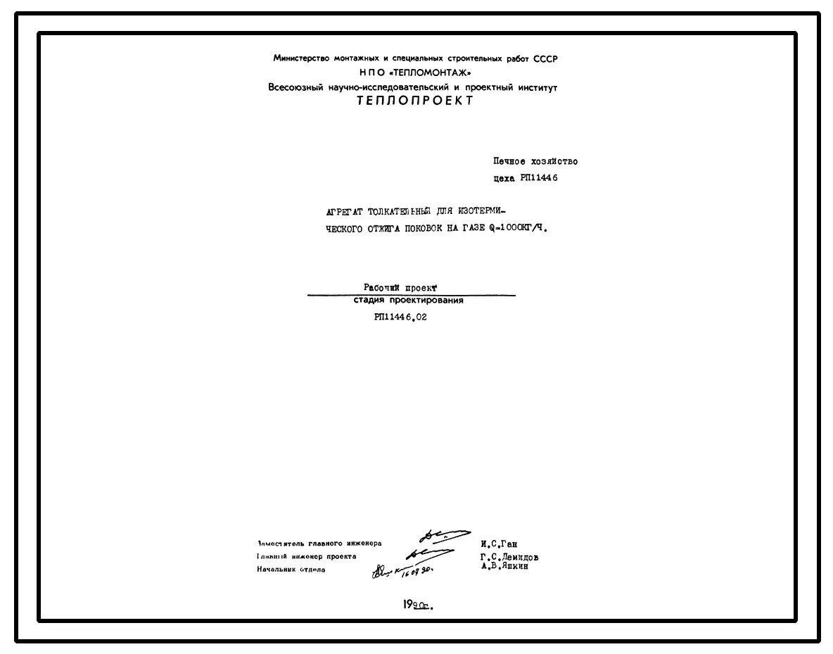 Проект РП11446.02 Агрегат толкательный для изотермического отжига поковок на газе Q=1000 кг/ч