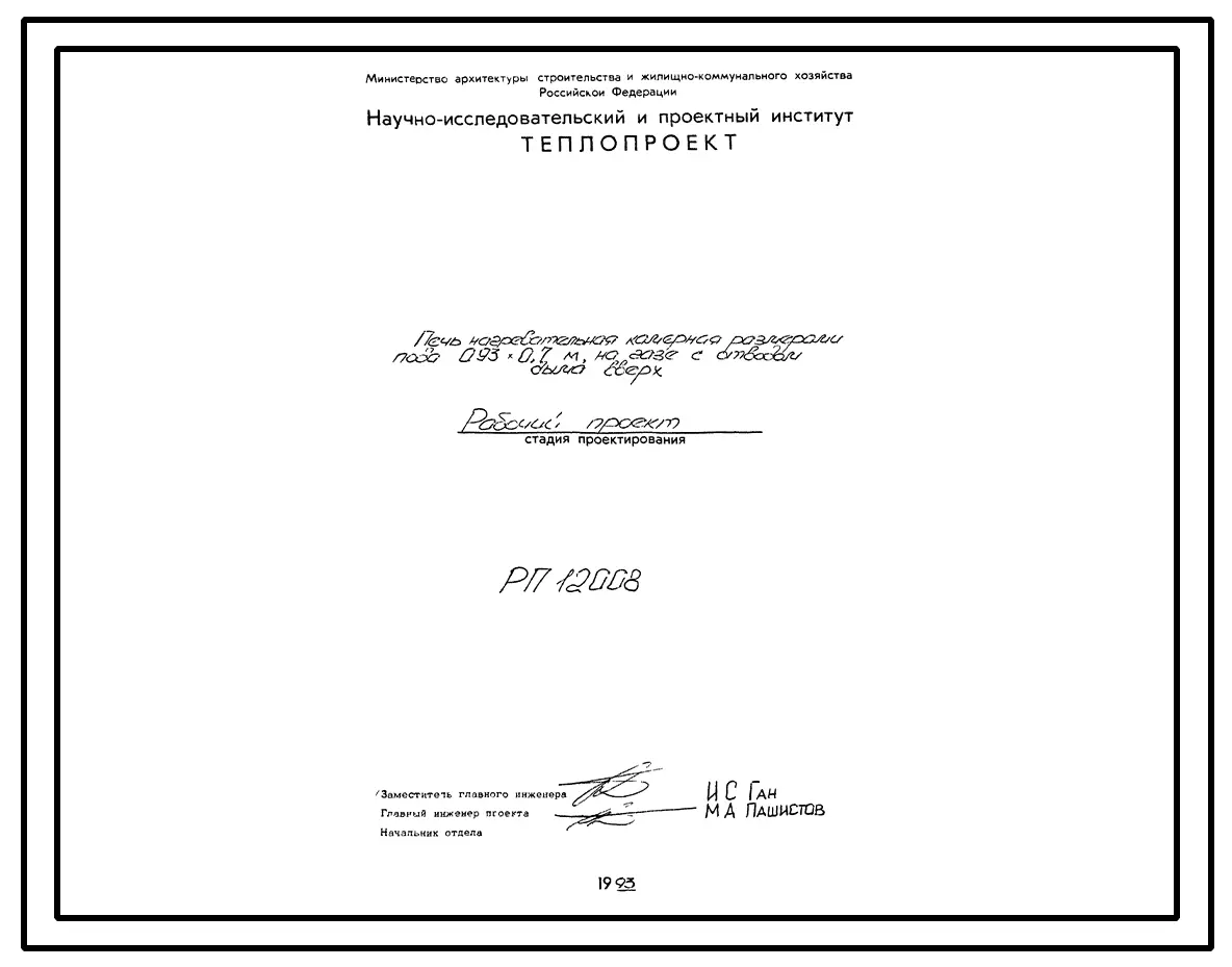 Проект РП12008 Печь нагревательная камерная размерами пода 0,93х0,7 м, на газе с отводом дыма вверх