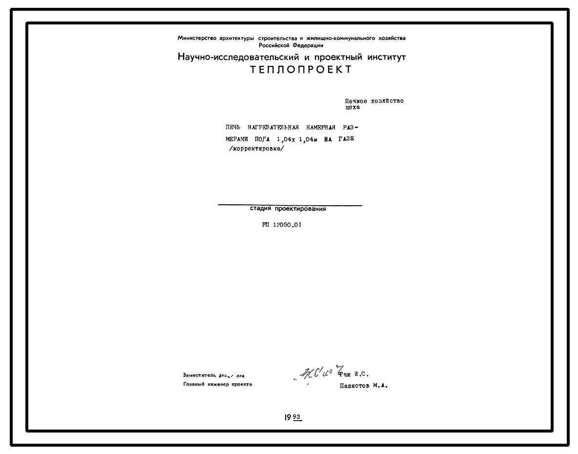 Проект РП12050.01 Печь нагревательная камерная размерами пода 1,04х1,04 м, на газе