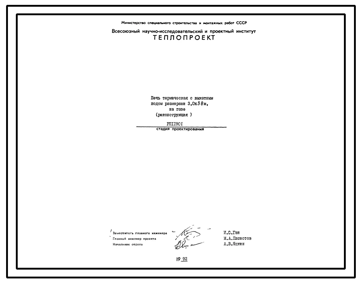 Проект РП11901 Печь термическая с выкатным подом размерами 3,0х3,8 м, на газе