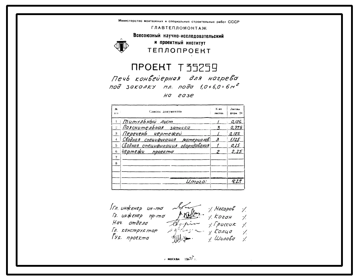 Проект Т35259 Печь конвейерная для нагрева под закалку пл.пода 1,0х6,0 =6,0 м² на газе