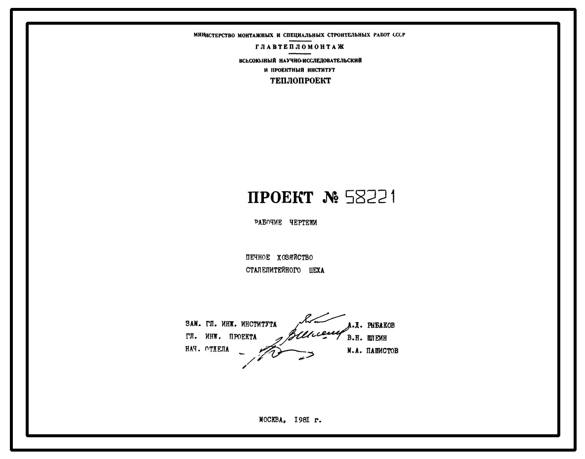 Проект 58221 Печное хозяйство сталелитейного цеха