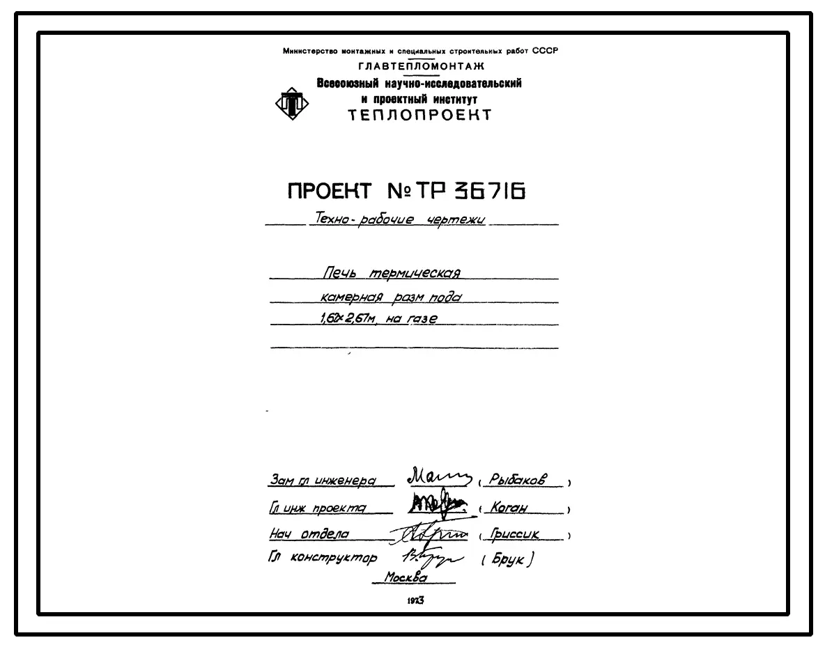 Проект ТР36716 Печь термическая камерная размером пода 1,62х2,67 м, на газе