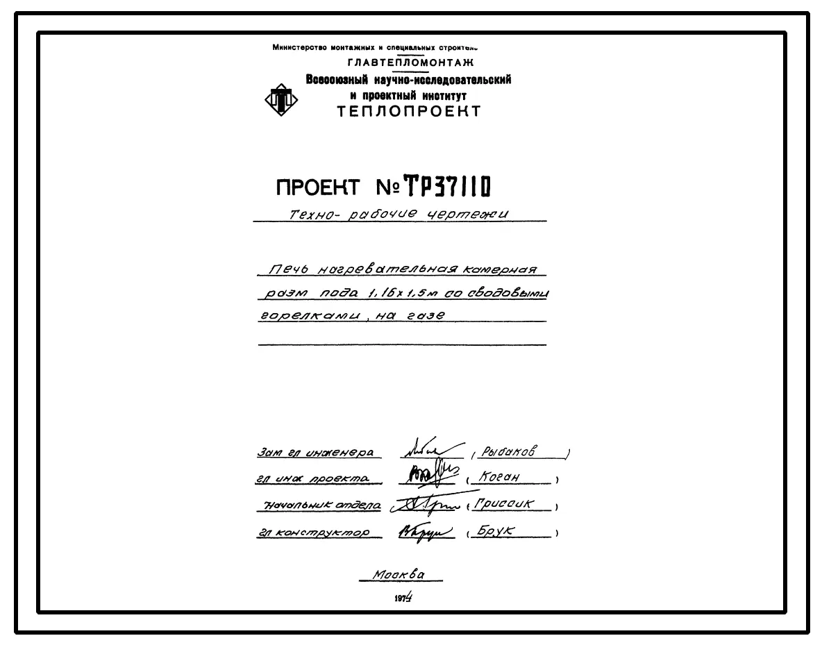 Проект ТР37110 Печь нагревательная камерная размером пода 1,16х1,5 м со сводовыми горелками, на газе