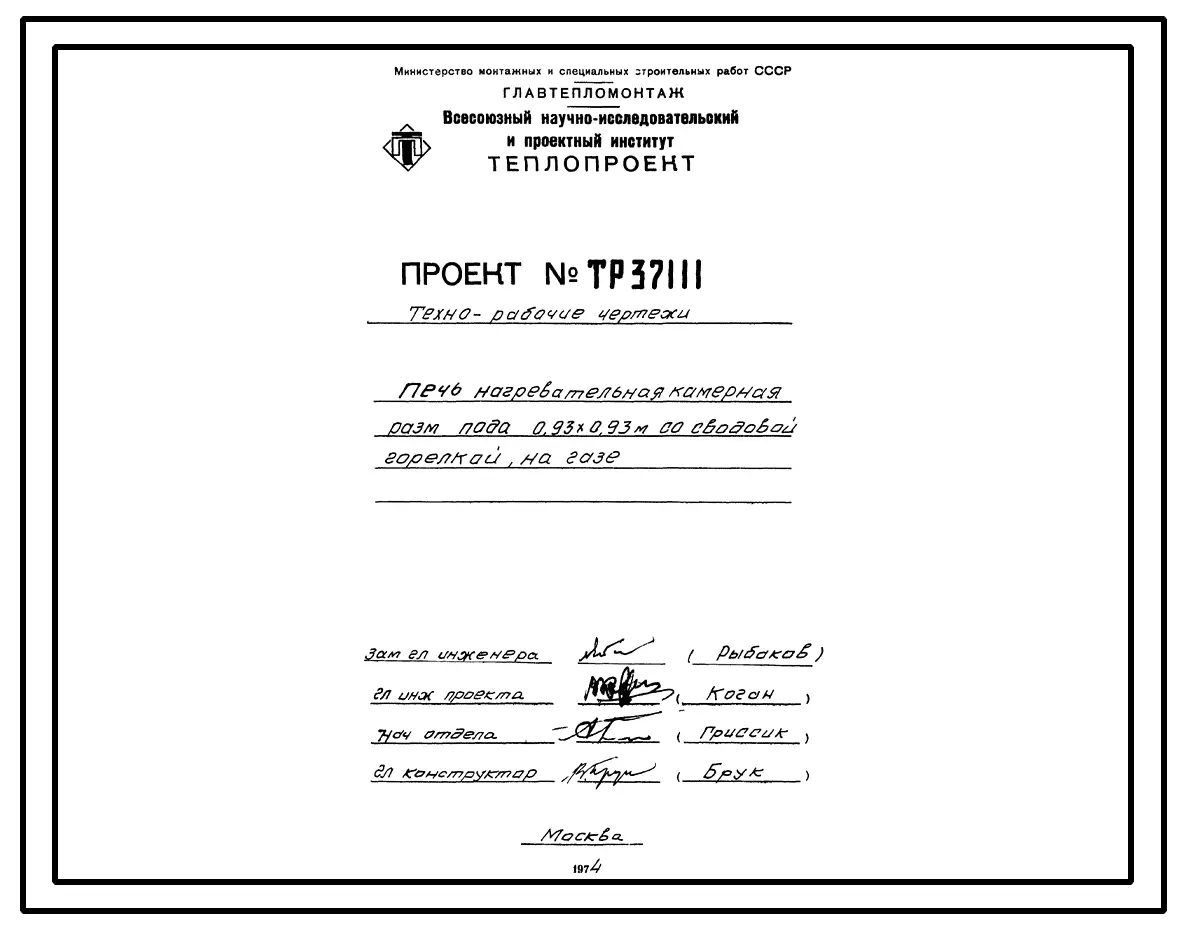 Проект ТР37111 Печь нагревательная камерная размером пода 0,93х0,93 м, со сводовой горелкой, на газе