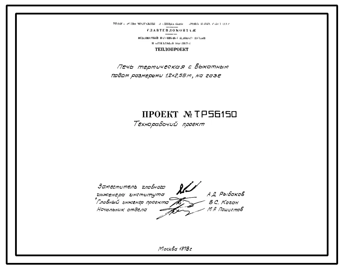 Проект ТР56150 Печь термическая с выкатным подом размерами 1,2х2,55 м, на газе
