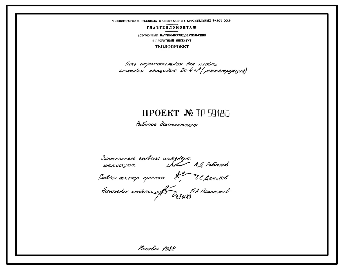 Проект ТР59186 Печь отражательная для плавки алюминия площадью до 4 м²