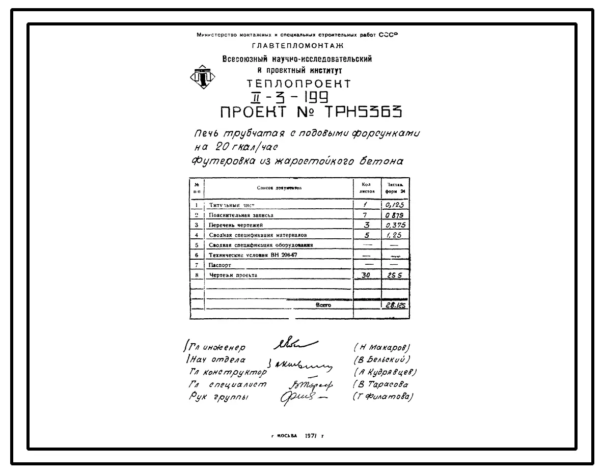 Проект ТРН5363 Печь трубчатая с подовыми форсунками на 20 Гкал/ч. Футеровка из жаростойкого бетона