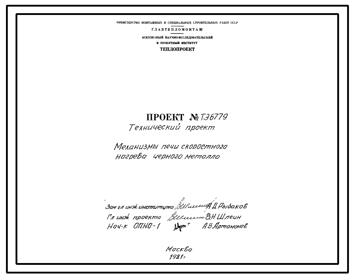 Проект ТЭ6779 Механизмы печи скоростного нагрева черного металла
