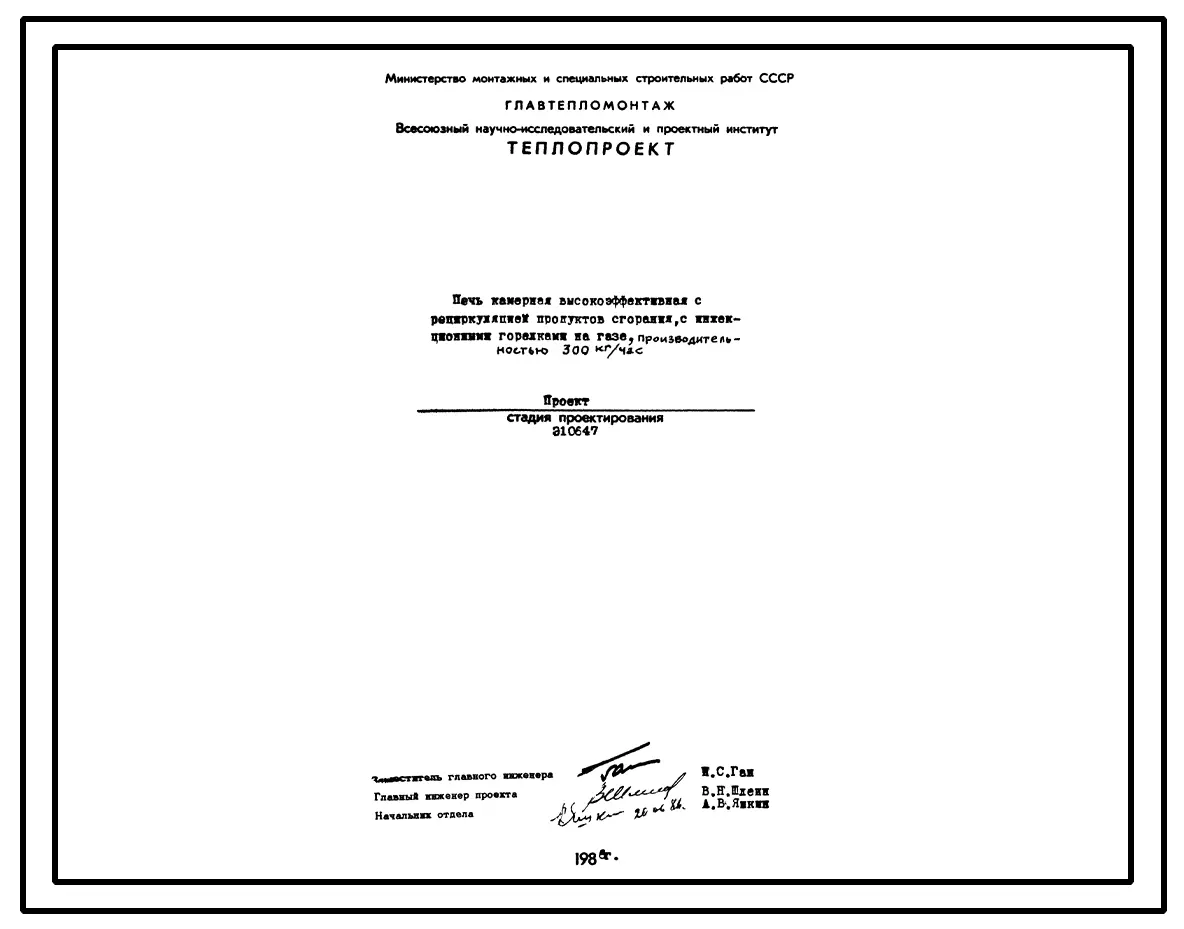 Проект Э10647 Печь камерная высокоэффективная с рециркуляцией продуктов сгорания, с инжекционными горелками на газе, производительностью 300 кг/час