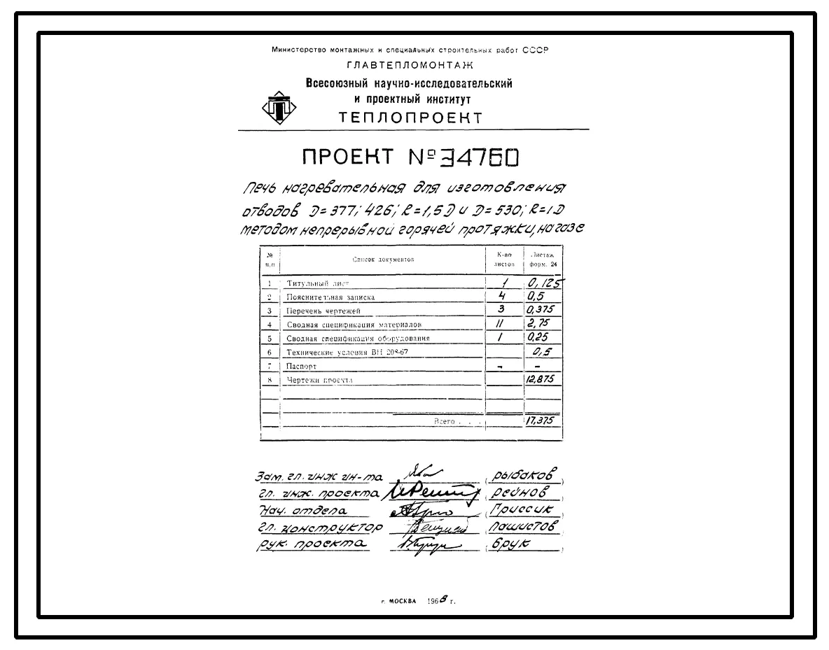 Проект Э4760 Печь нагревательная для изготовления отводов D=377;426 . R=1,5; D u D=530; R=1D Методом непрерывной горячей протяжки, на газе