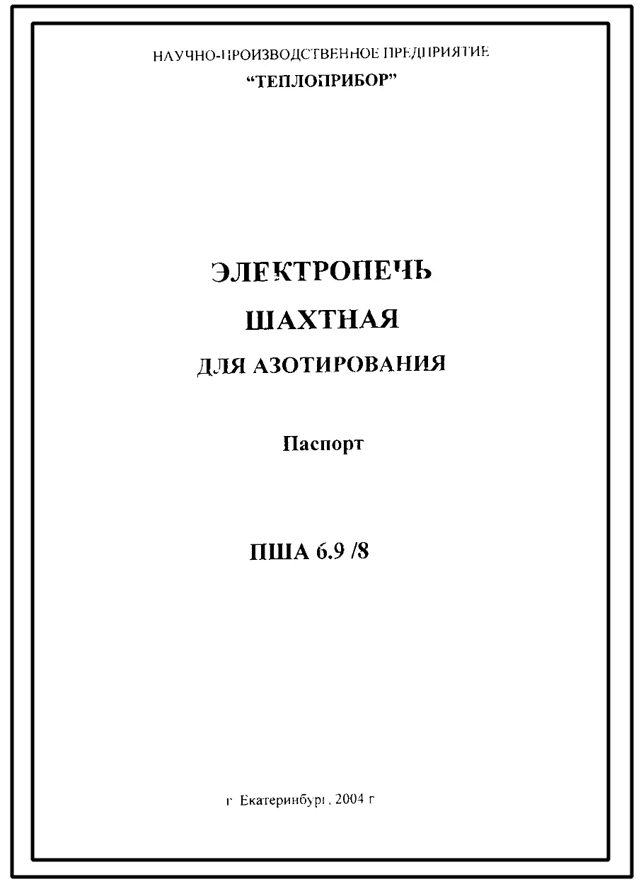 Шифр ПША6.9/8 Электропечь шахтная для азотирования ПША6.9/8.(Паспорт).