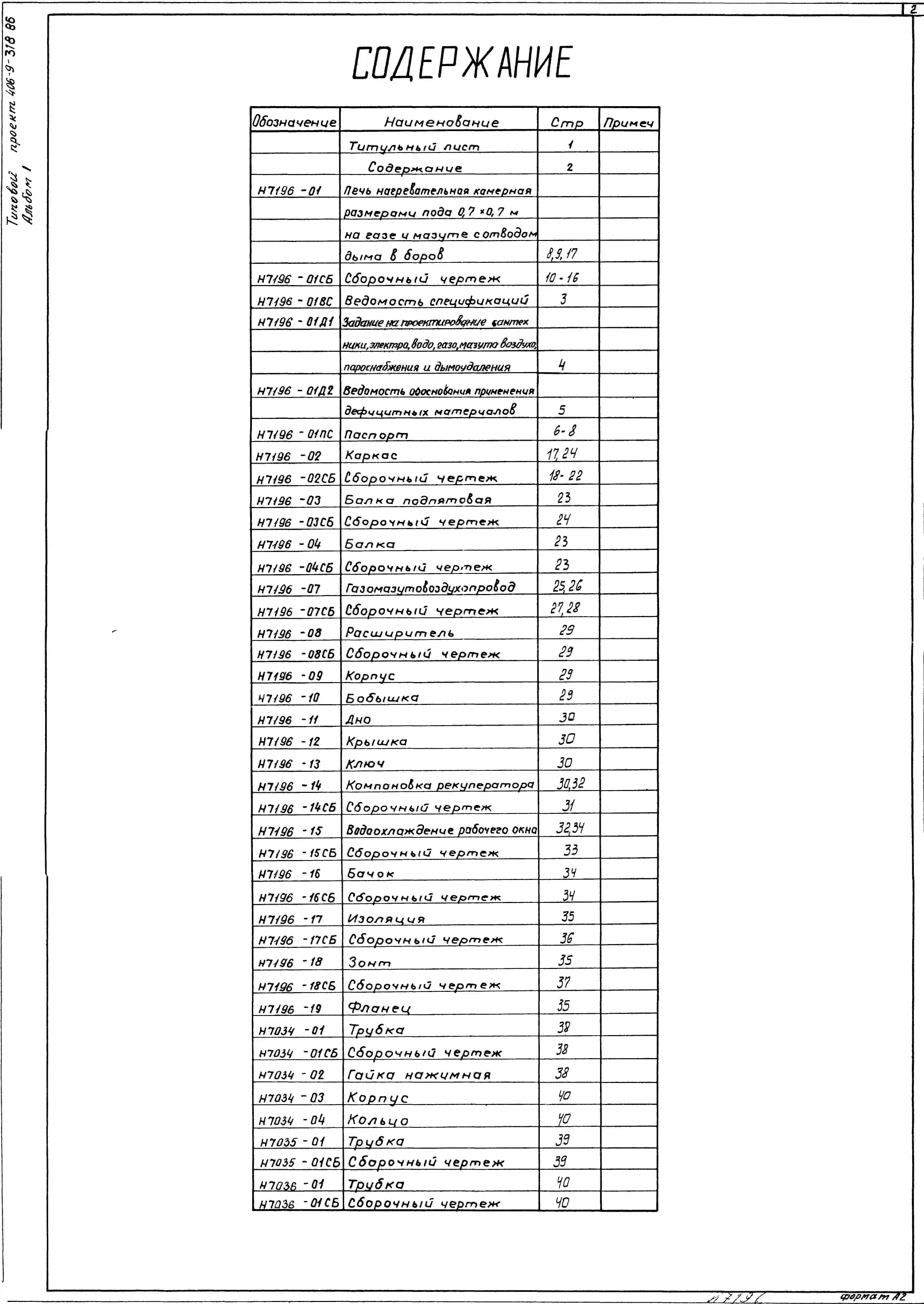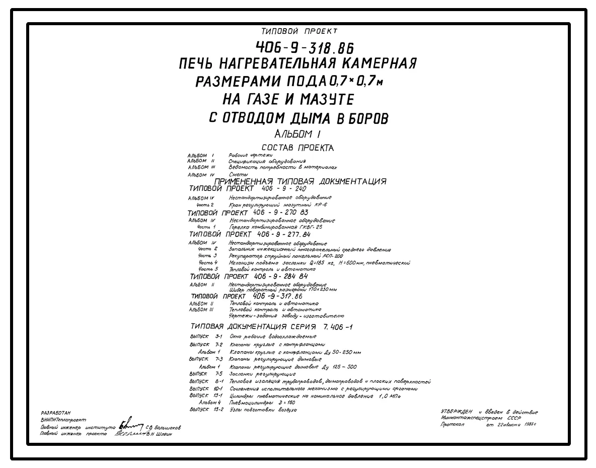Типовой проект 406-9-318.86 Печь нагревательная камерная размерами пода 0,7 х 0,7 м на газе и мазуте с отводом дыма в боров