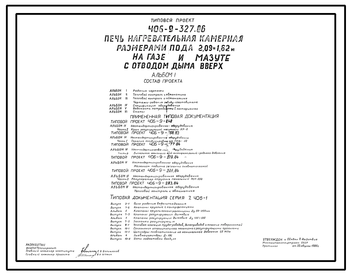 Типовой проект 406-9-327.86 Печь нагревательная камерная размерами пода 2,09 х 1,62 м на газе и мазуте с отводом дыма вверх