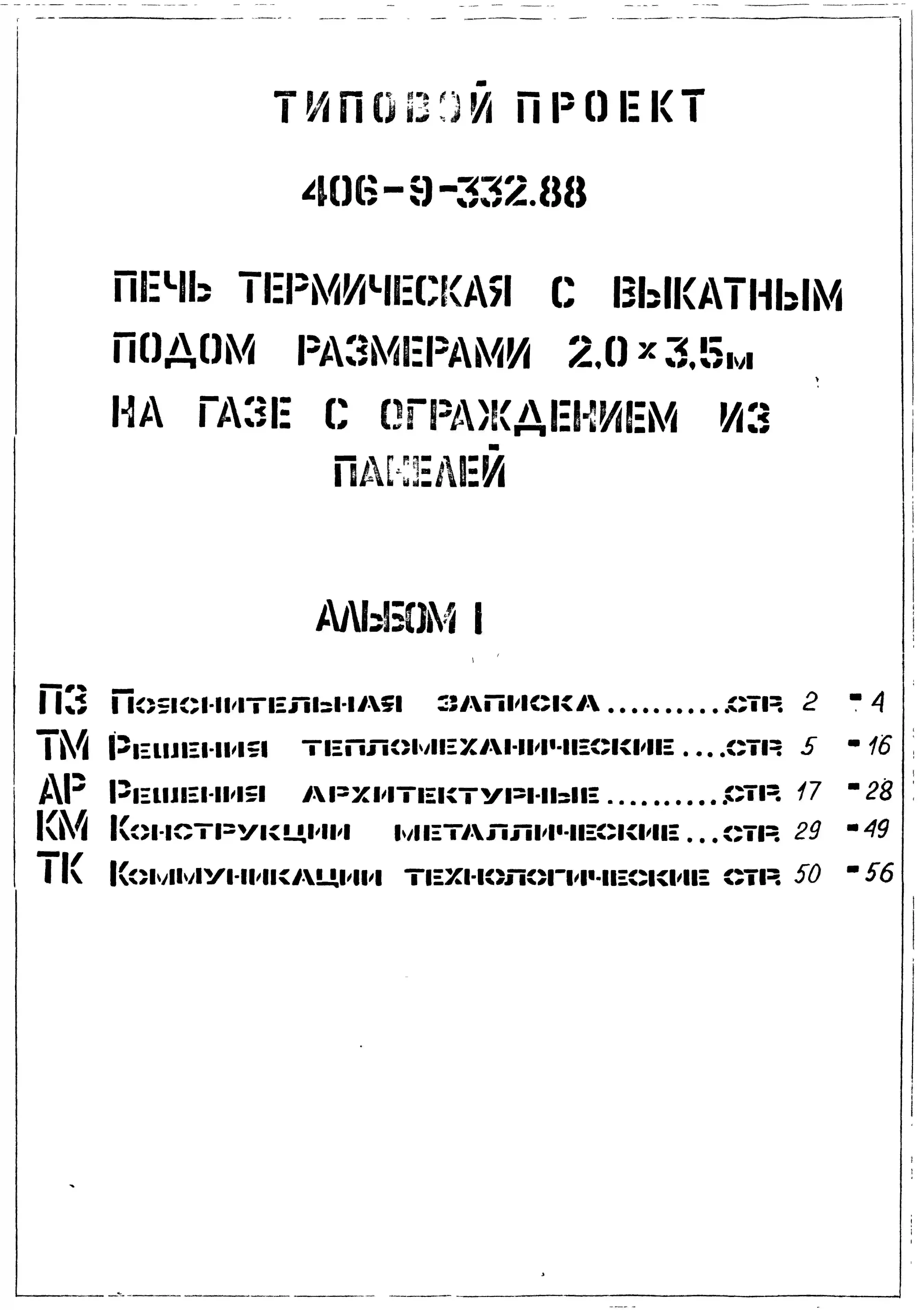 Типовой проект 406-9-332.88 Печь термическая с выкатным подом размерами 2,0 х 3,5 м на газе с ограждением из панелей