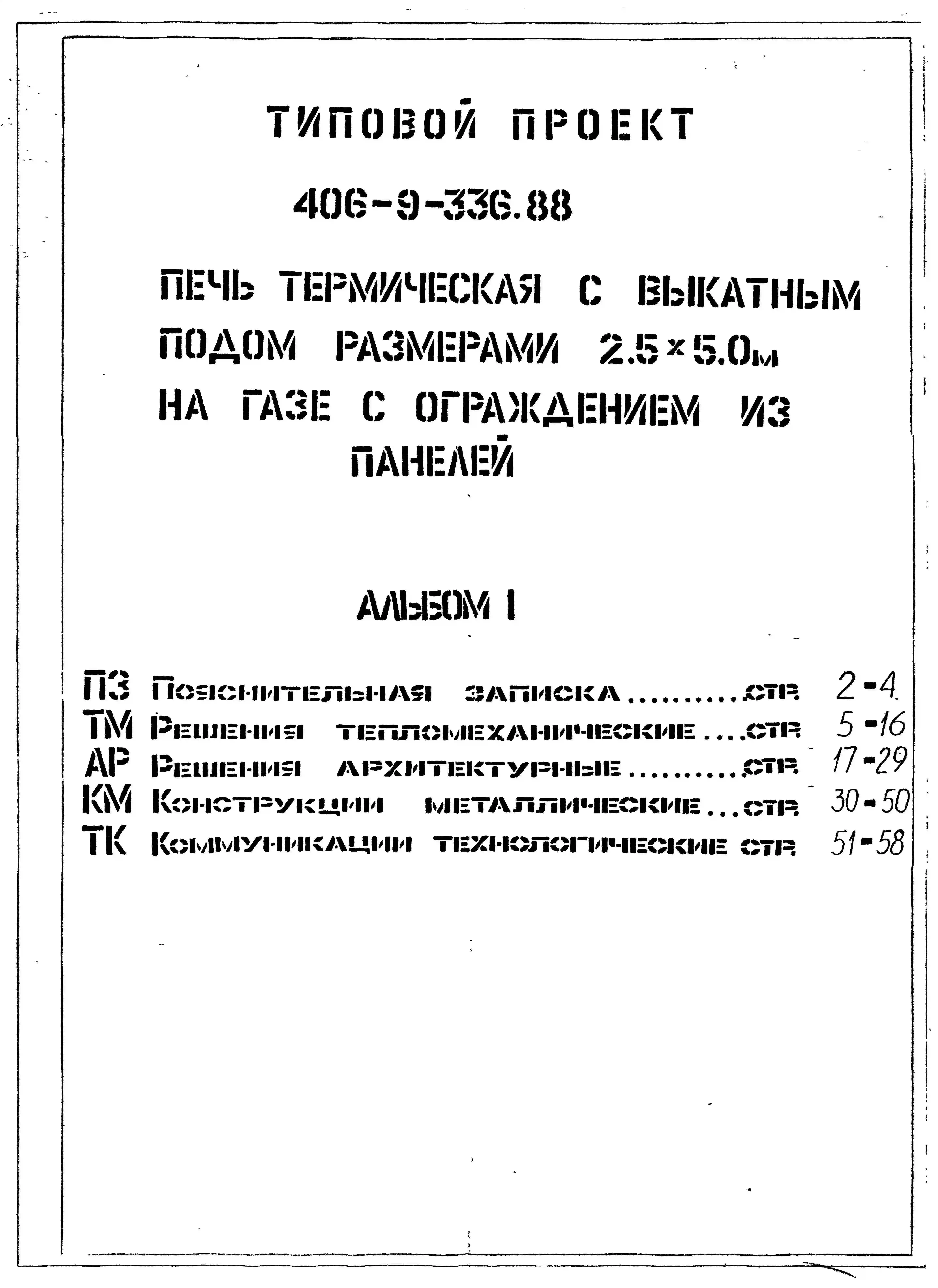 Типовой проект 406-9-336.88 Печь термическая с выкатным подом размерами 2,5 х 5,0 м на газе с ограждением из панелей