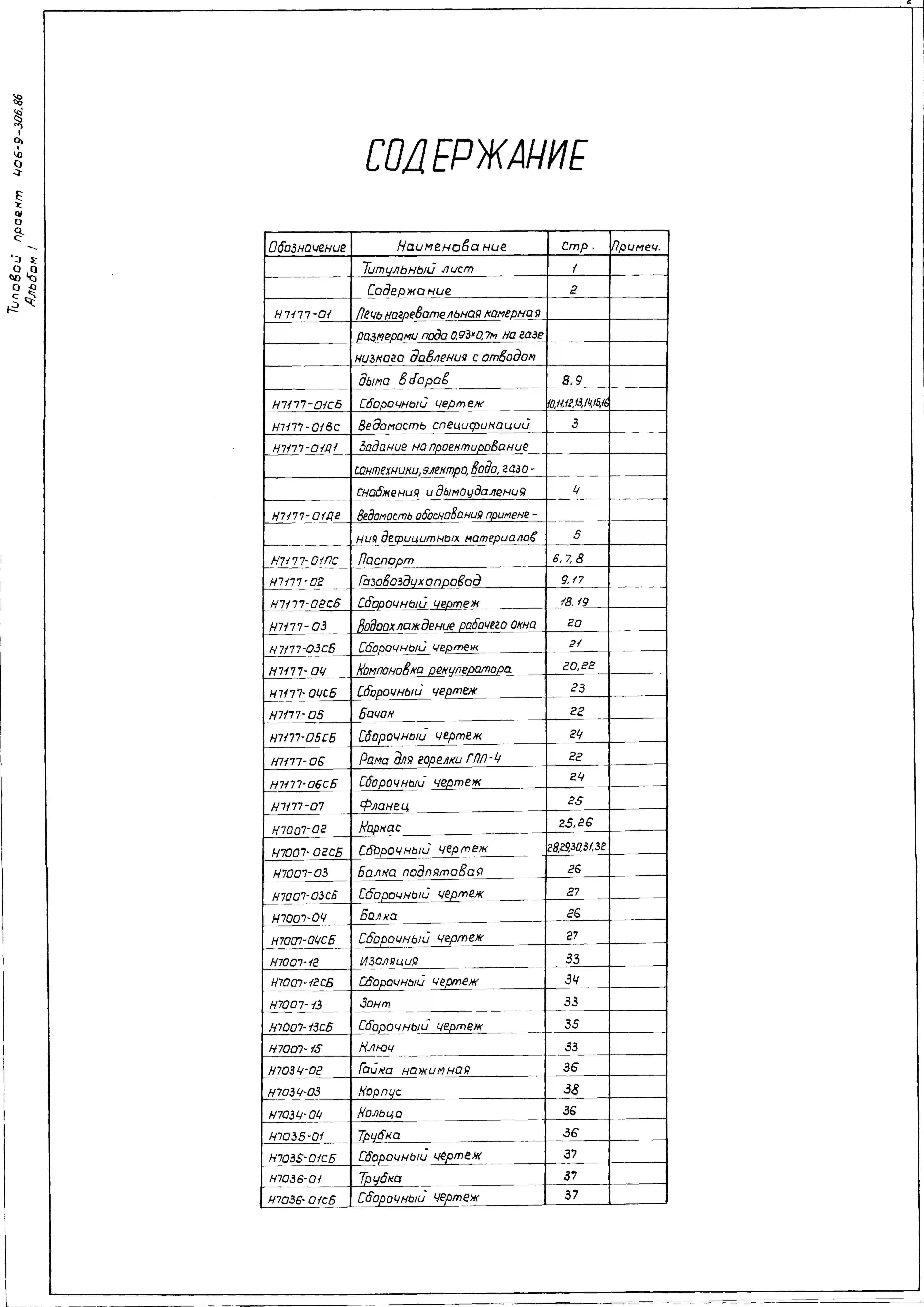 Типовой проект 406-9-306.86 Печь нагревательная камерная размерами пода 0,93х0,7 м на газе низкого давления с отводом дыма в боров