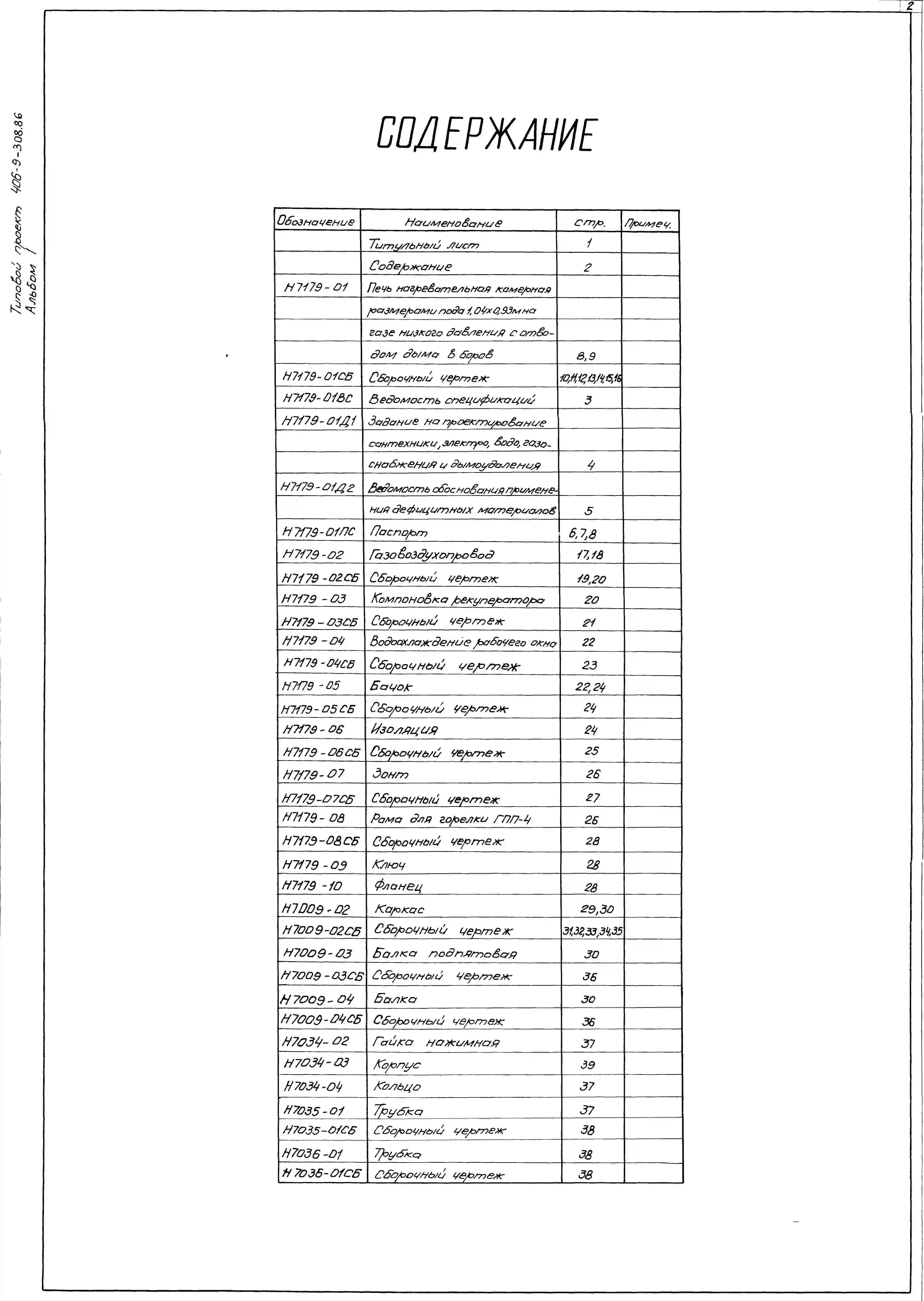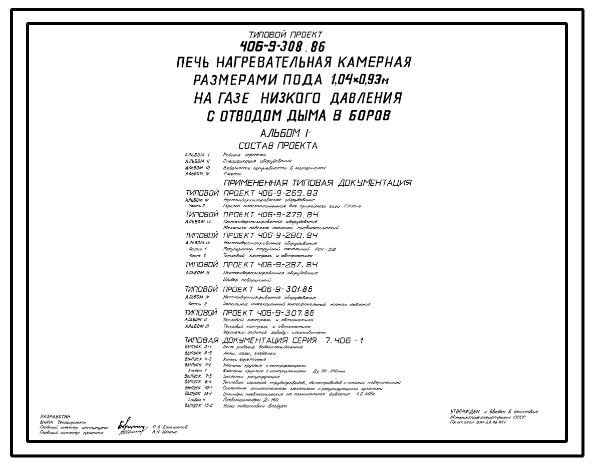 Типовой проект 406-9-308.86 Печь нагревательная камерная размерами пода 1,04х0,93 м на газе низкого давления с отводом дыма в боров