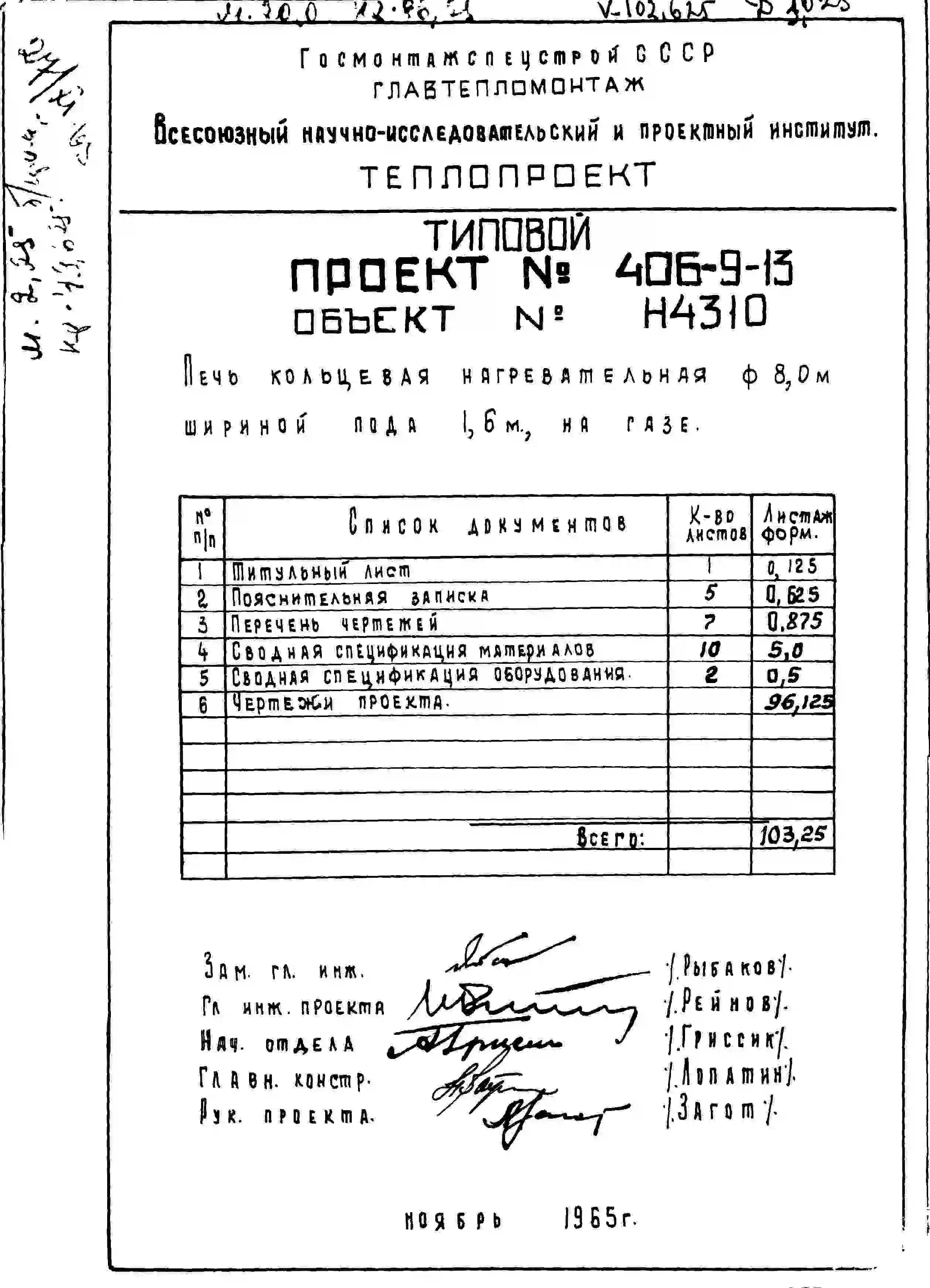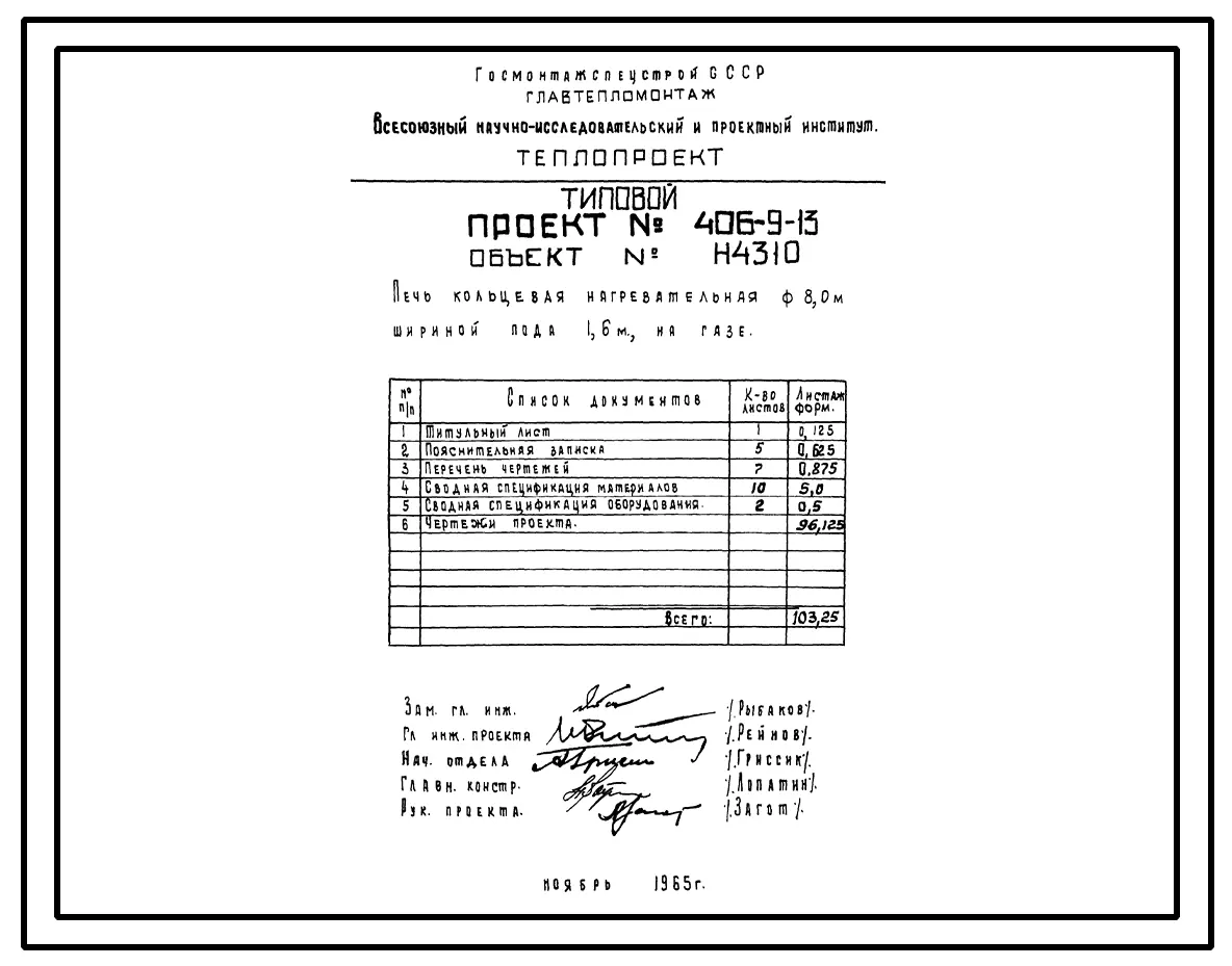 Типовой проект 406-9-13 Печь кольцевая нагревательная 8,0 м, шириной пода 1,6 м, на газе