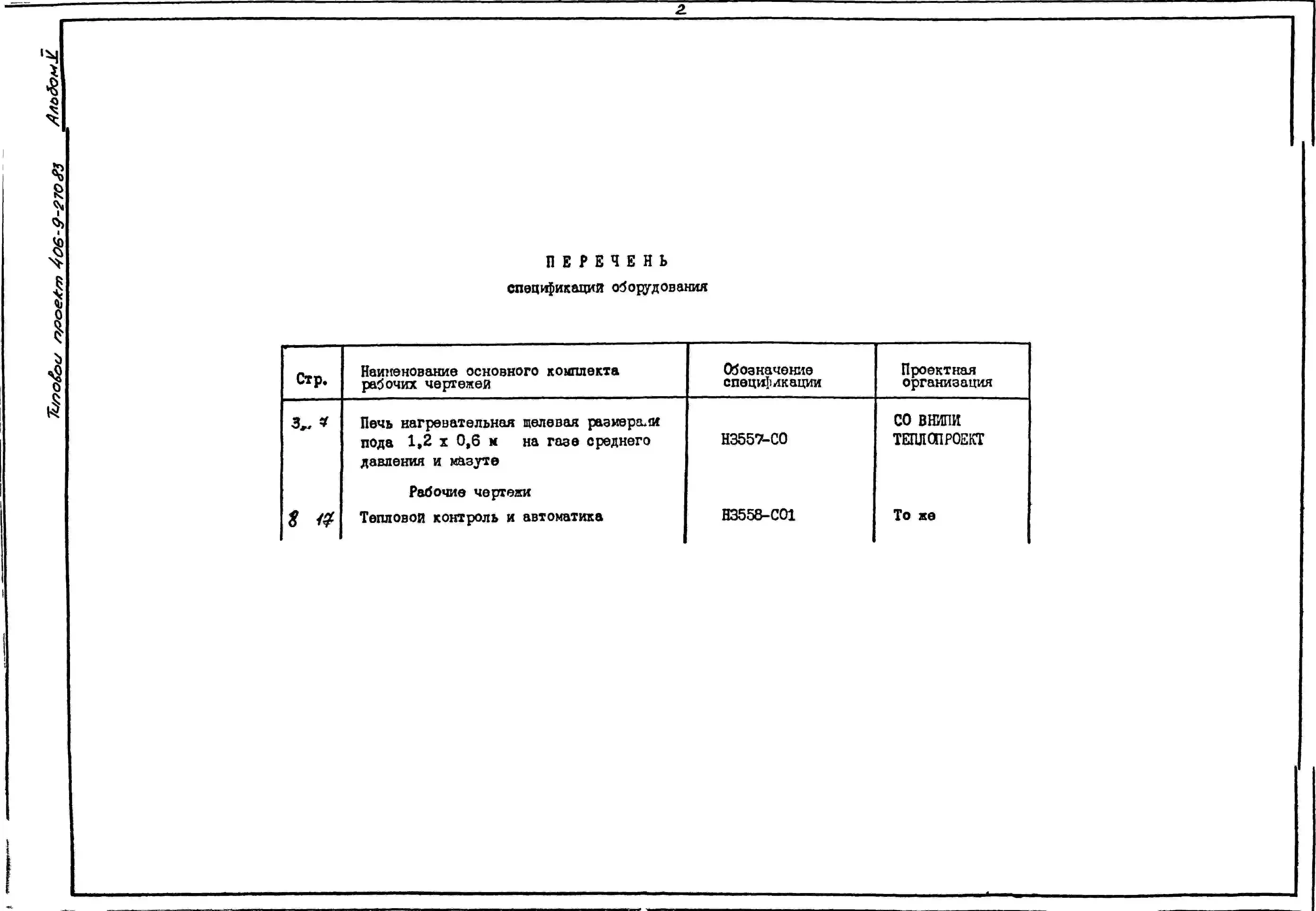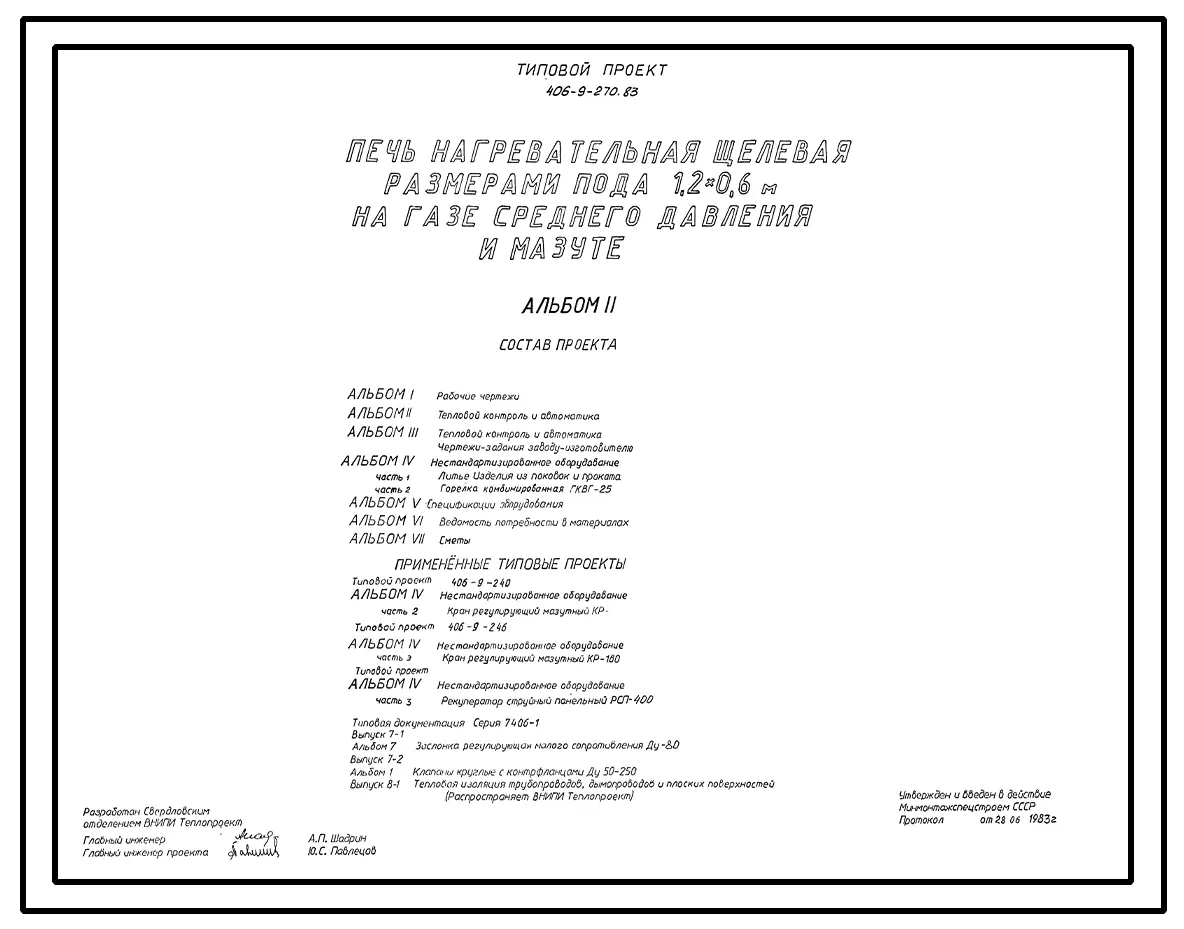 Типовой проект 406-9-270.83 Печь нагревательная щелевая размерами пода 1,2х0,6 м на газе среднего давления и мазуте