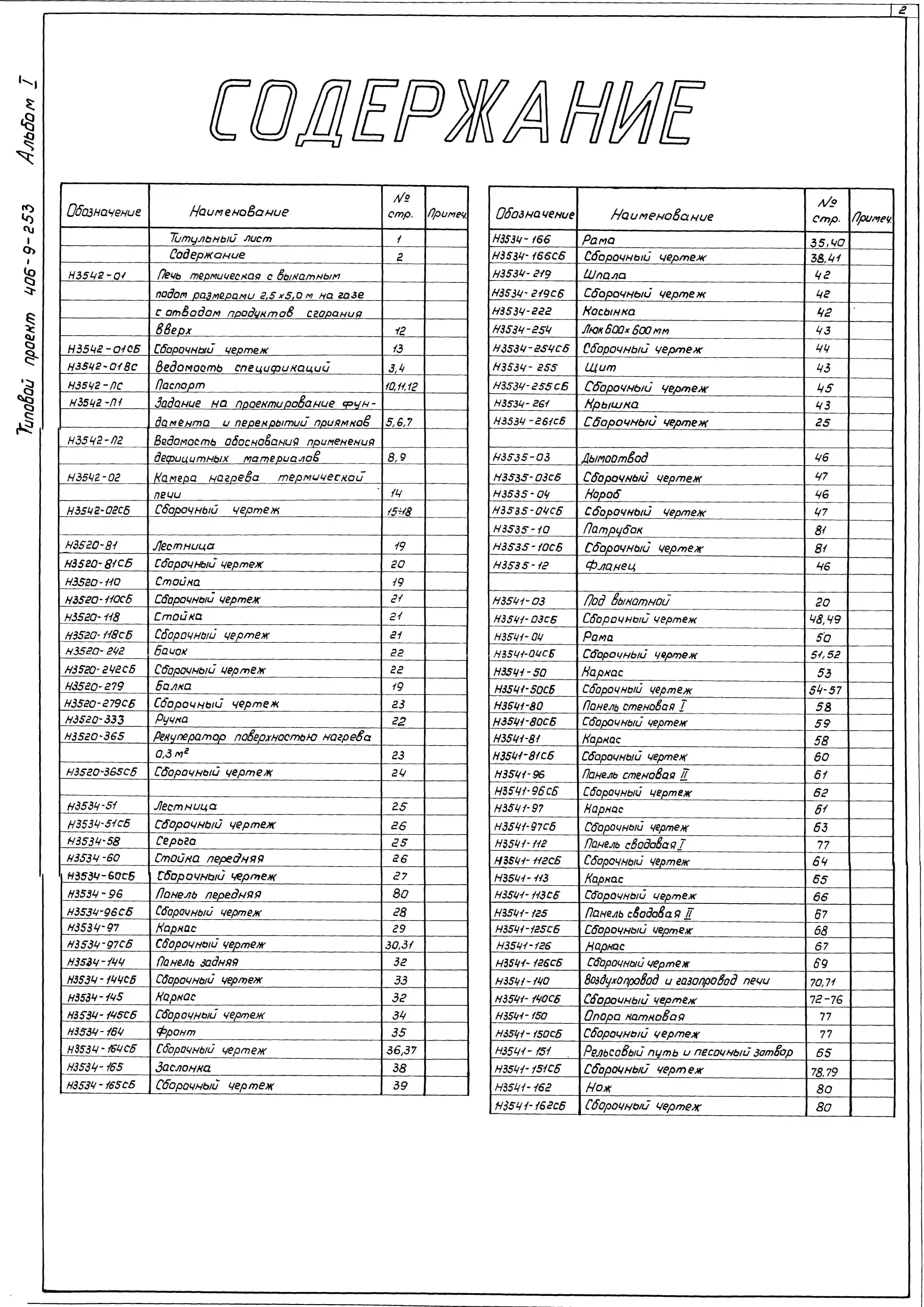 Типовой проект 406-9-253 Печь термическая с выкатным подом размерами 2,5х5,0 м на газе с отводом продуктов сгорания вверх