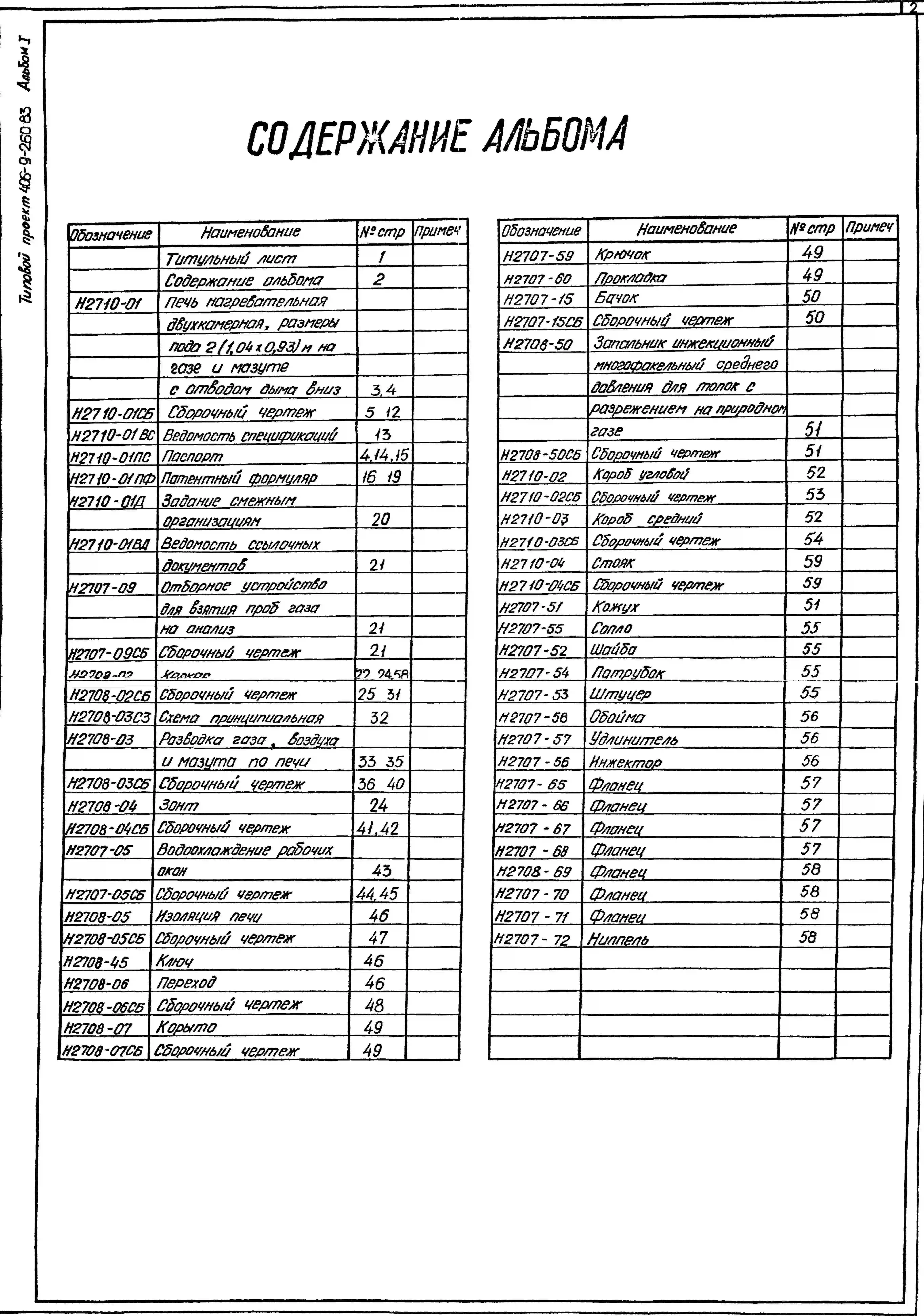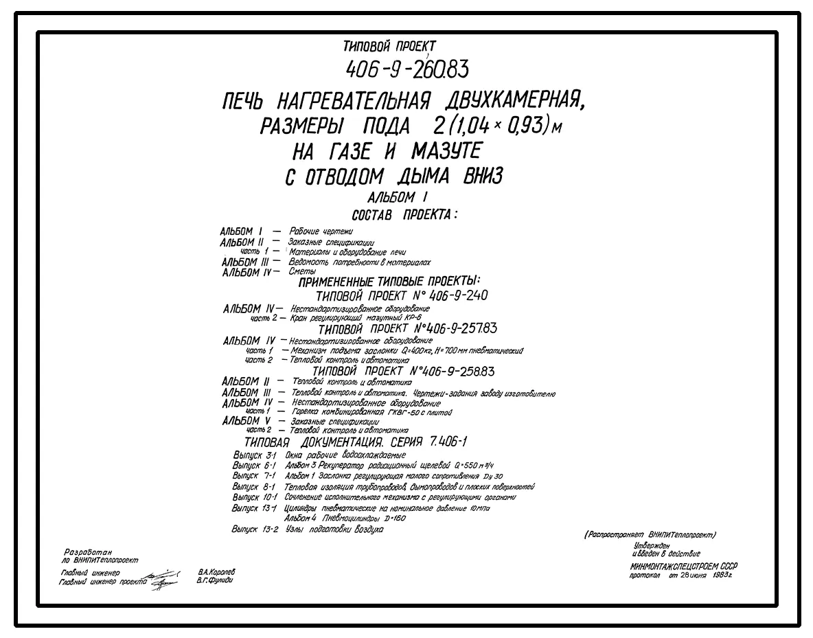 Типовой проект 406-9-260.83 Печь нагревательная двухкамерная, размеры пода 2(1,04х0,93) м, на газе и мазуте с отводом дыма вниз