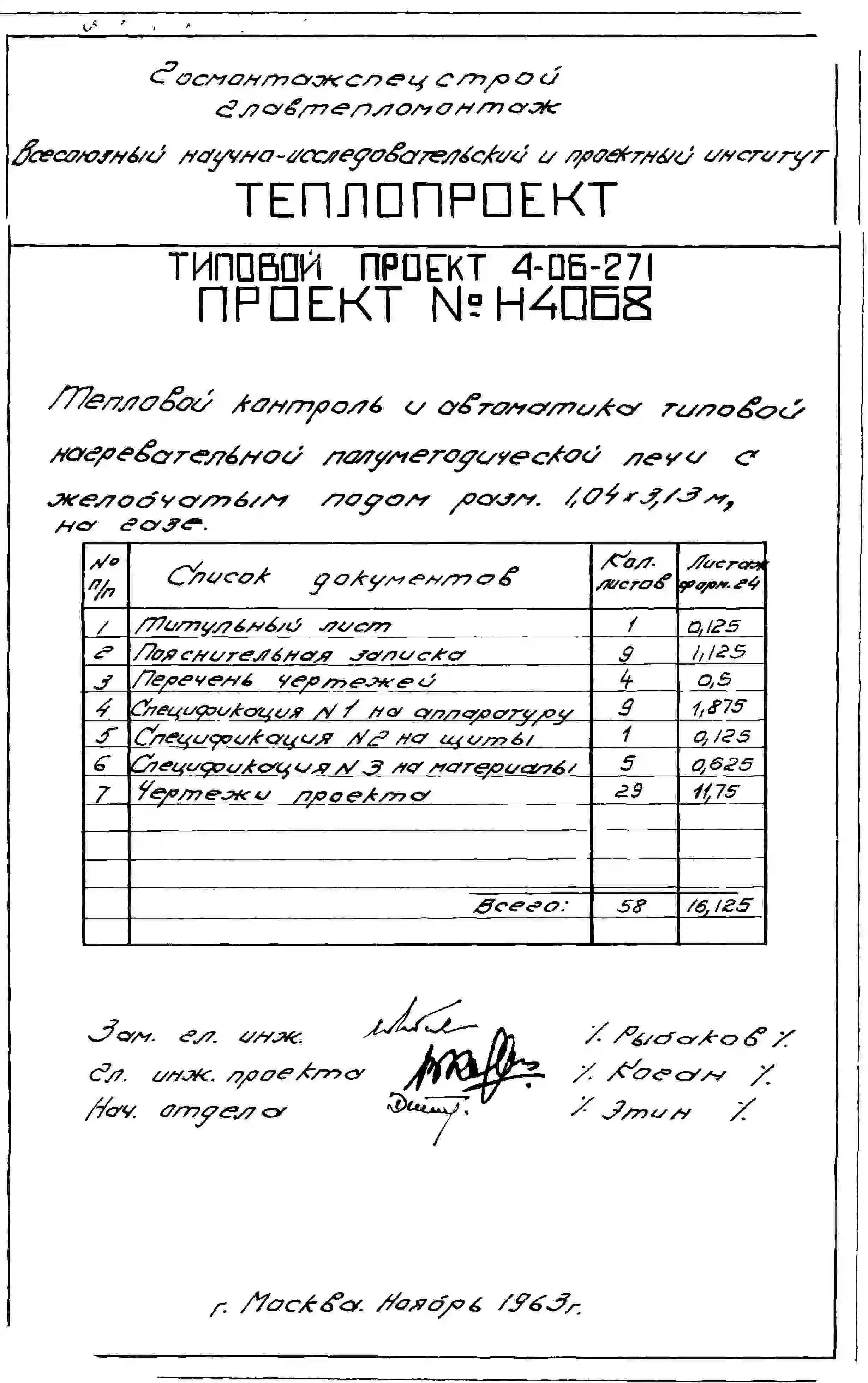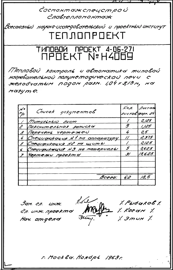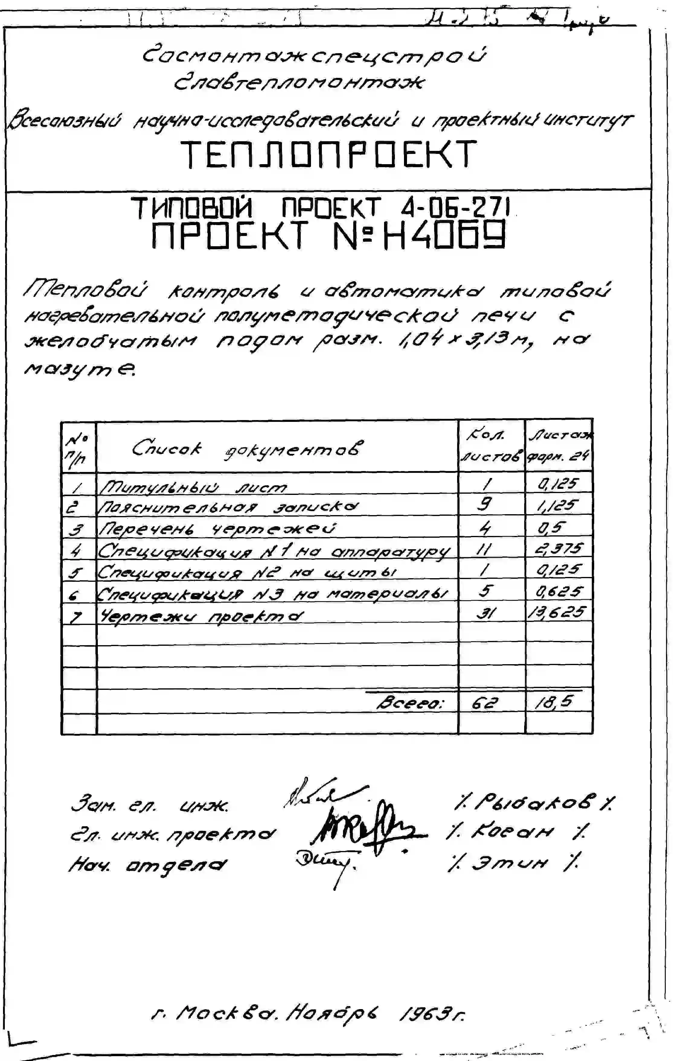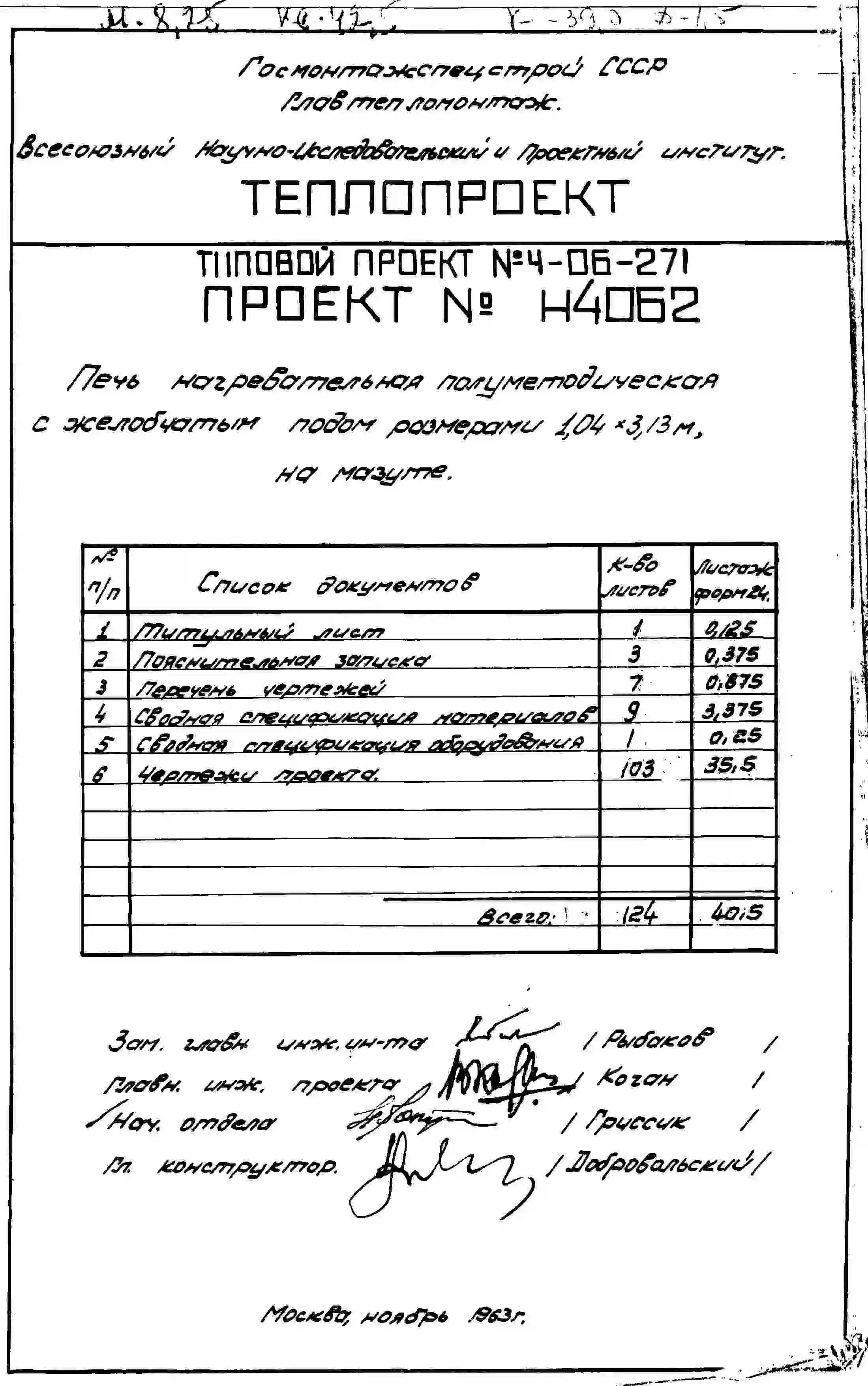 Типовой проект 4-06-271 Печь нагревательная полуметодическая с желобчатым подом размером 1,04х3,13 м, на газе и мазуте