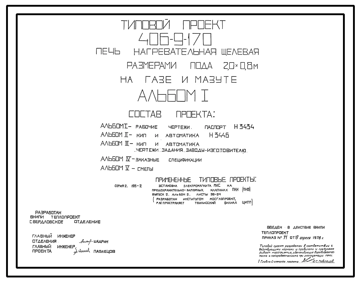 Типовой проект 406-9-170 Печь нагревательная щелевая размерами пода 2,0х0,8 м на газе и мазуте среднего давления.