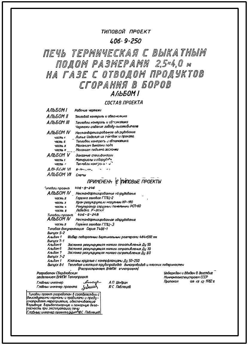 Типовой проект 406-9-250 Печь термическая с выкатным подом размерами 2,5х4,0 м на газе с отводом продуктов сгорания в боров
