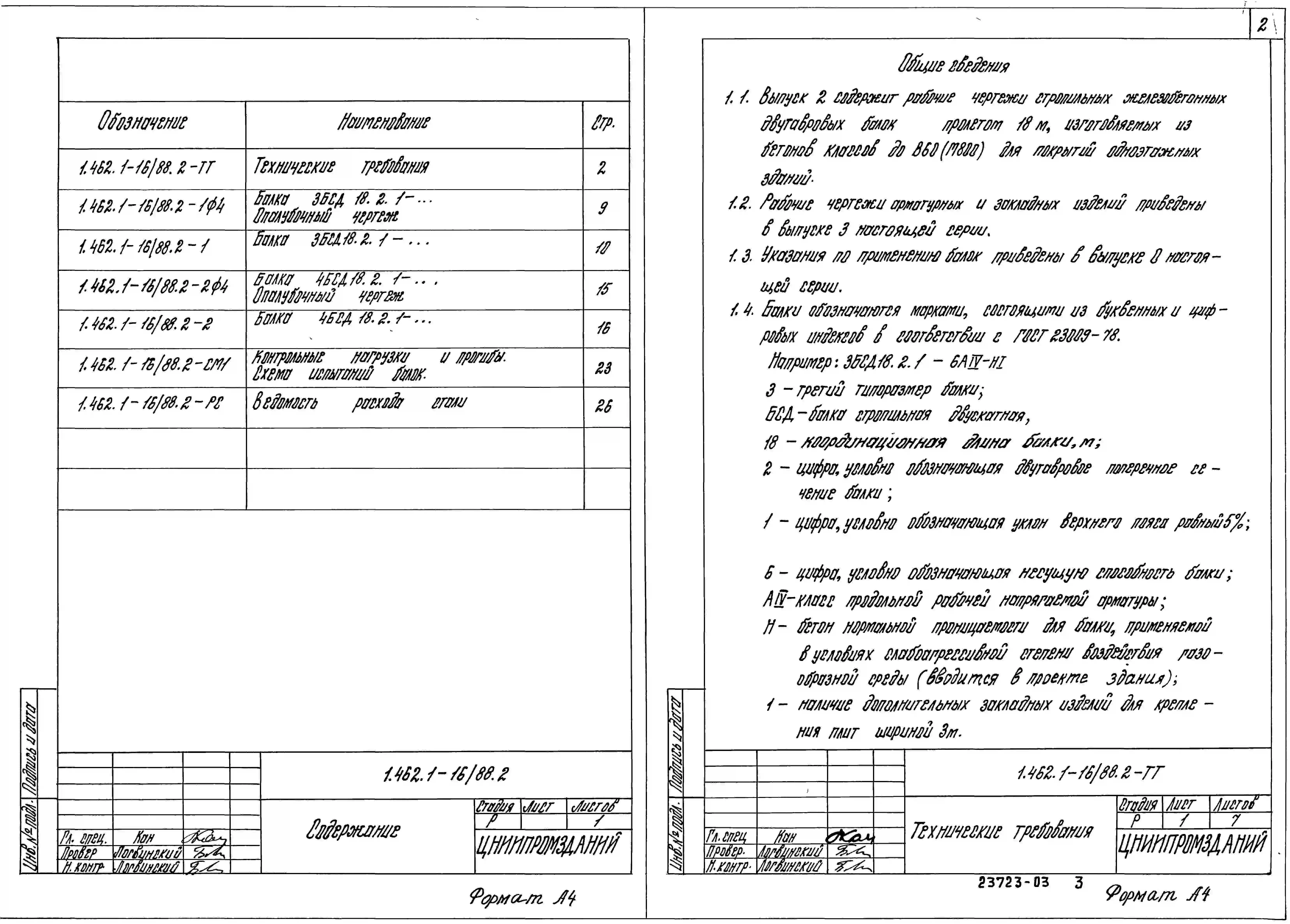 Серия 1.462.1-16/88 Балки стропильные железобетонные двутавровые пролетом 18 м для покрытий одноэтажных зданий промышленных предприятий. Рабочие чертежи.