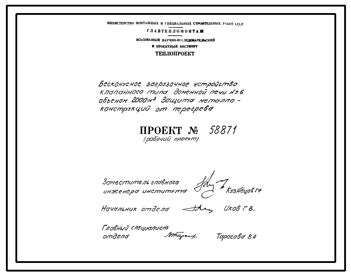 Проект 58871 Бесконусное загрузочное устройство клапанного типа доменной печи объемом 2000 м³. Защита металла - конструкций от перегрева