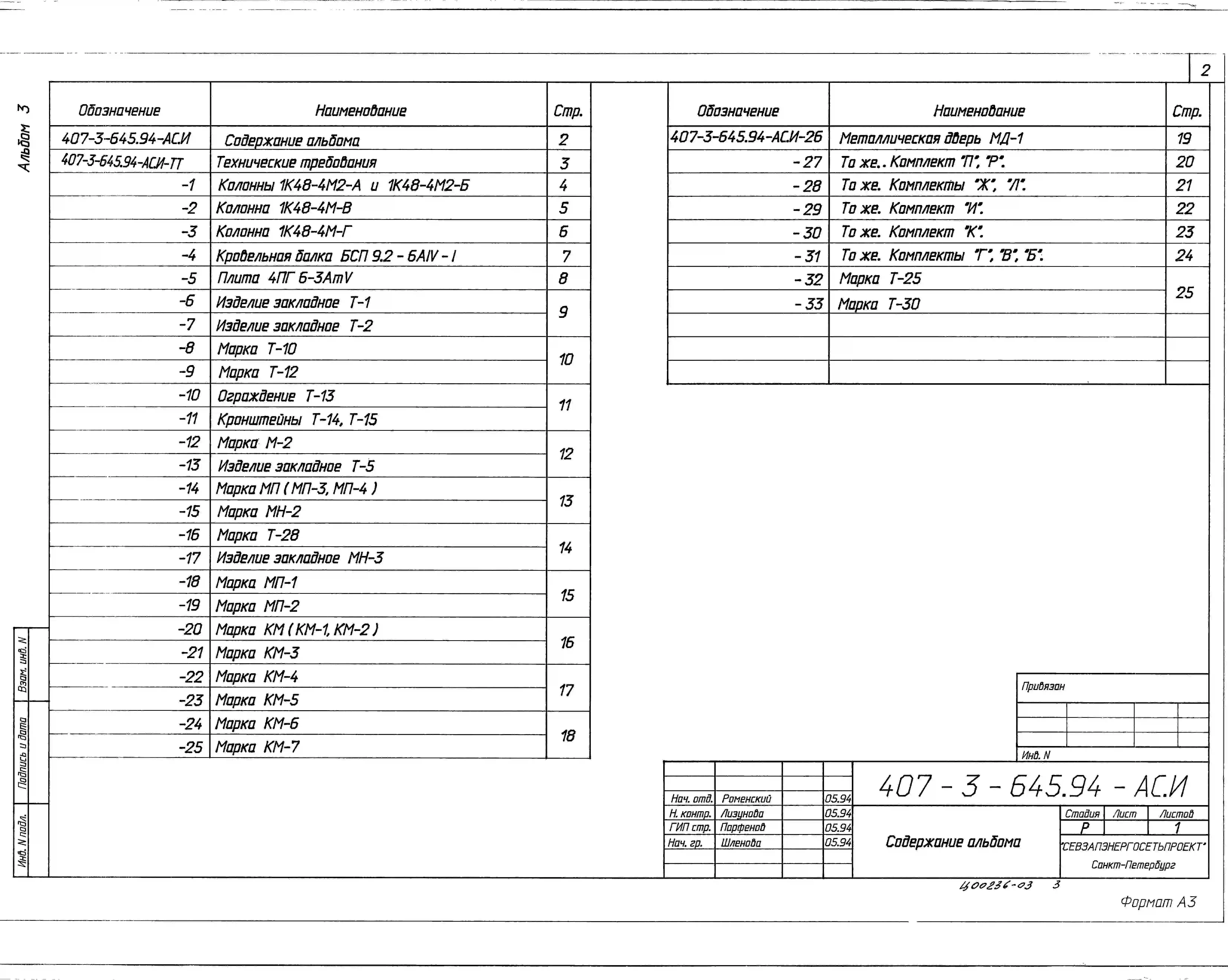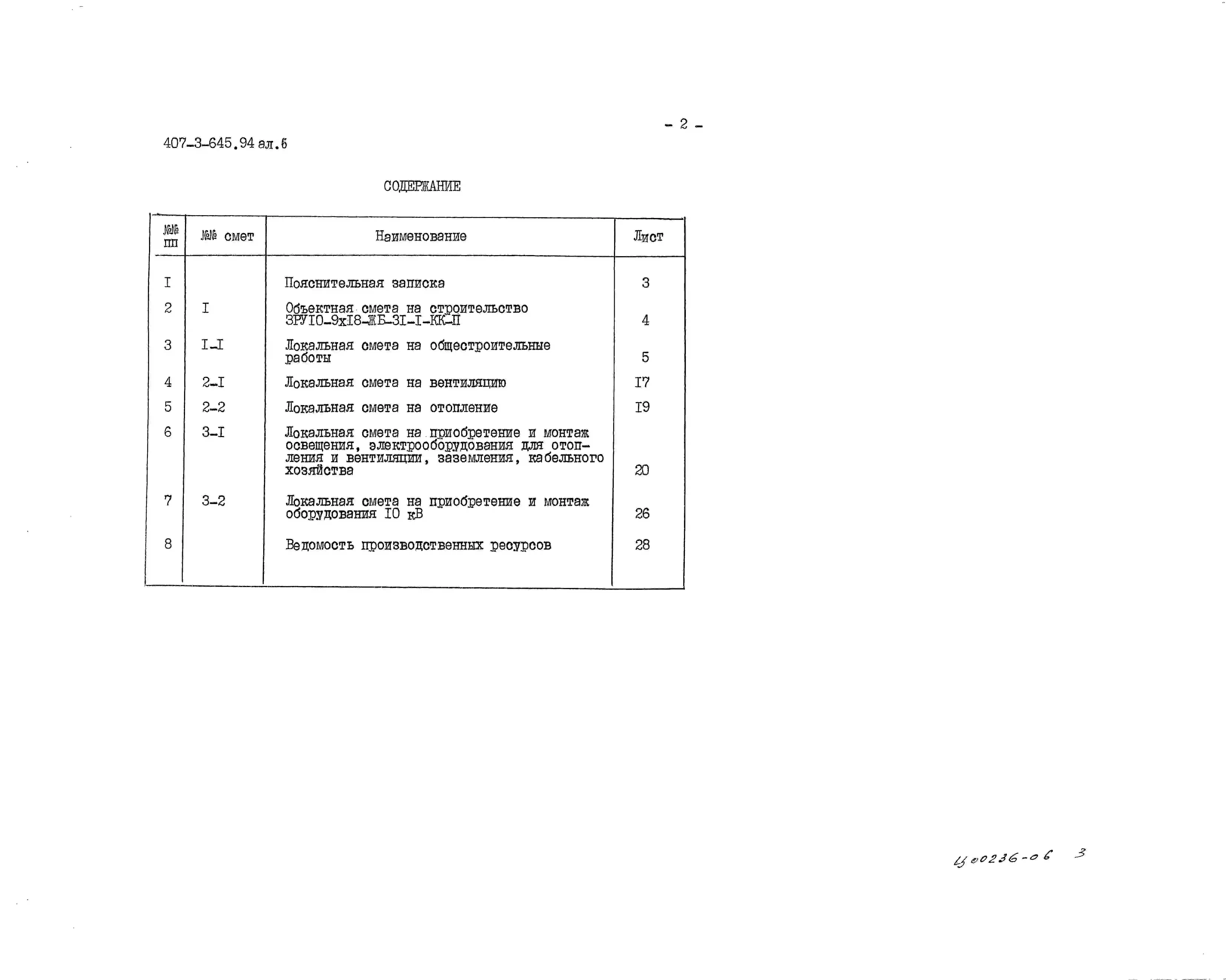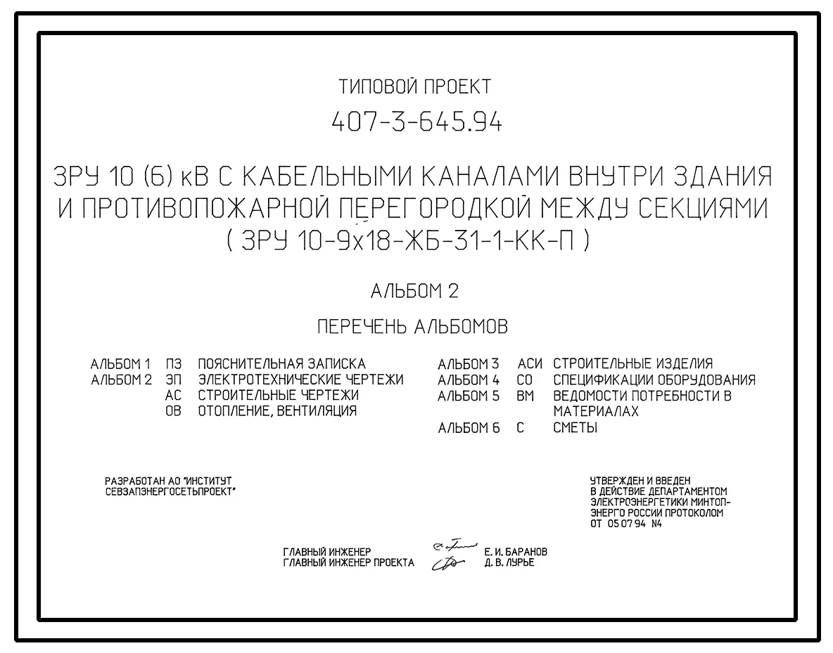 Типовой проект 407-3-645.94 ЗРУ 10(6) кВ с кабельными каналами внутри здания и противопожарной перегородкой между секциями ЗРУ 10-9x18-ЖБ-31-1-КК-П