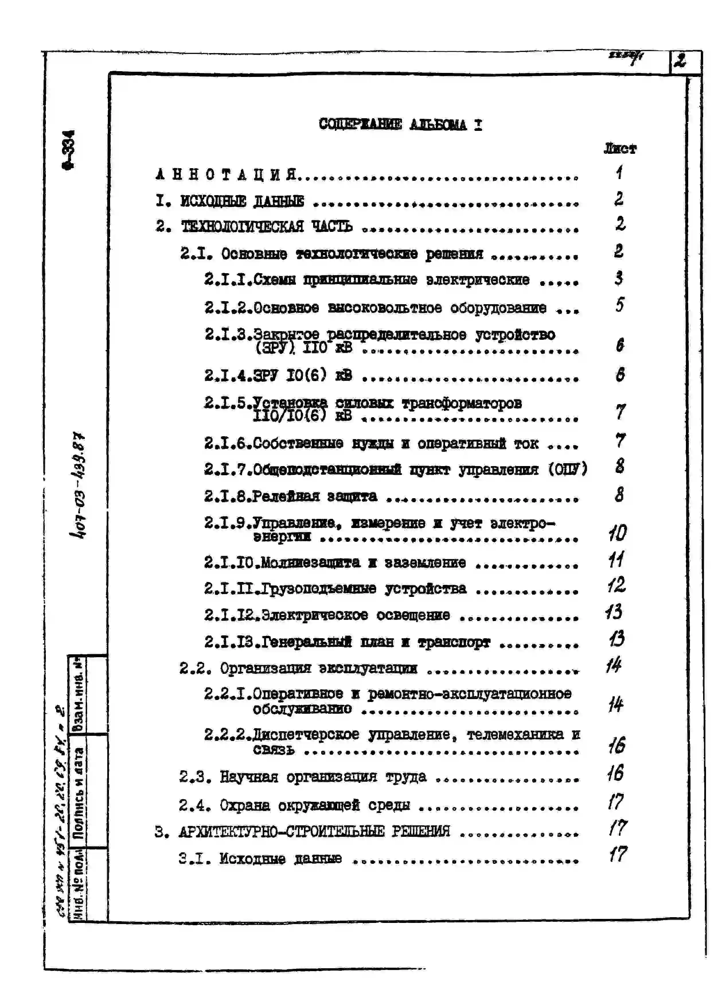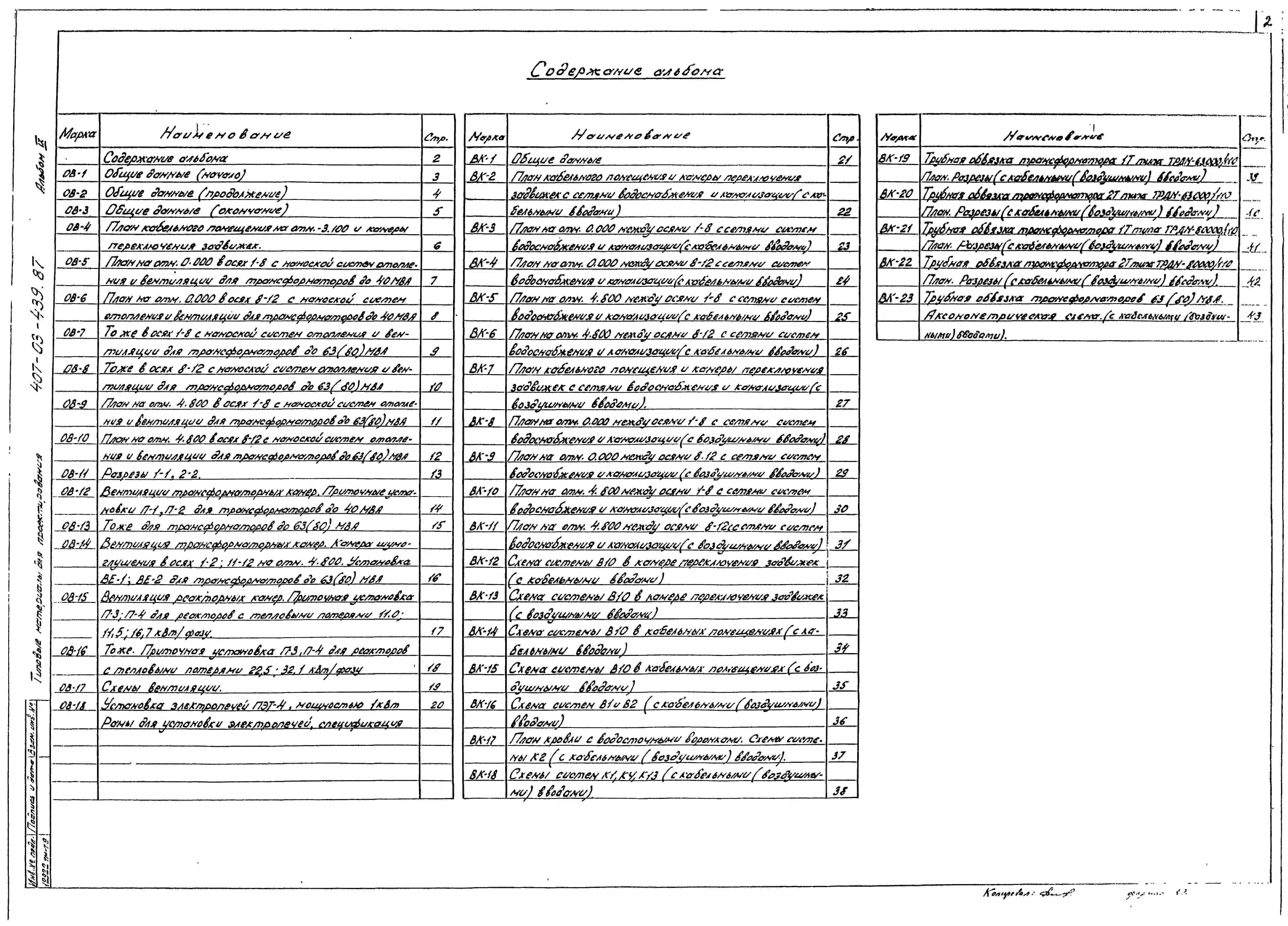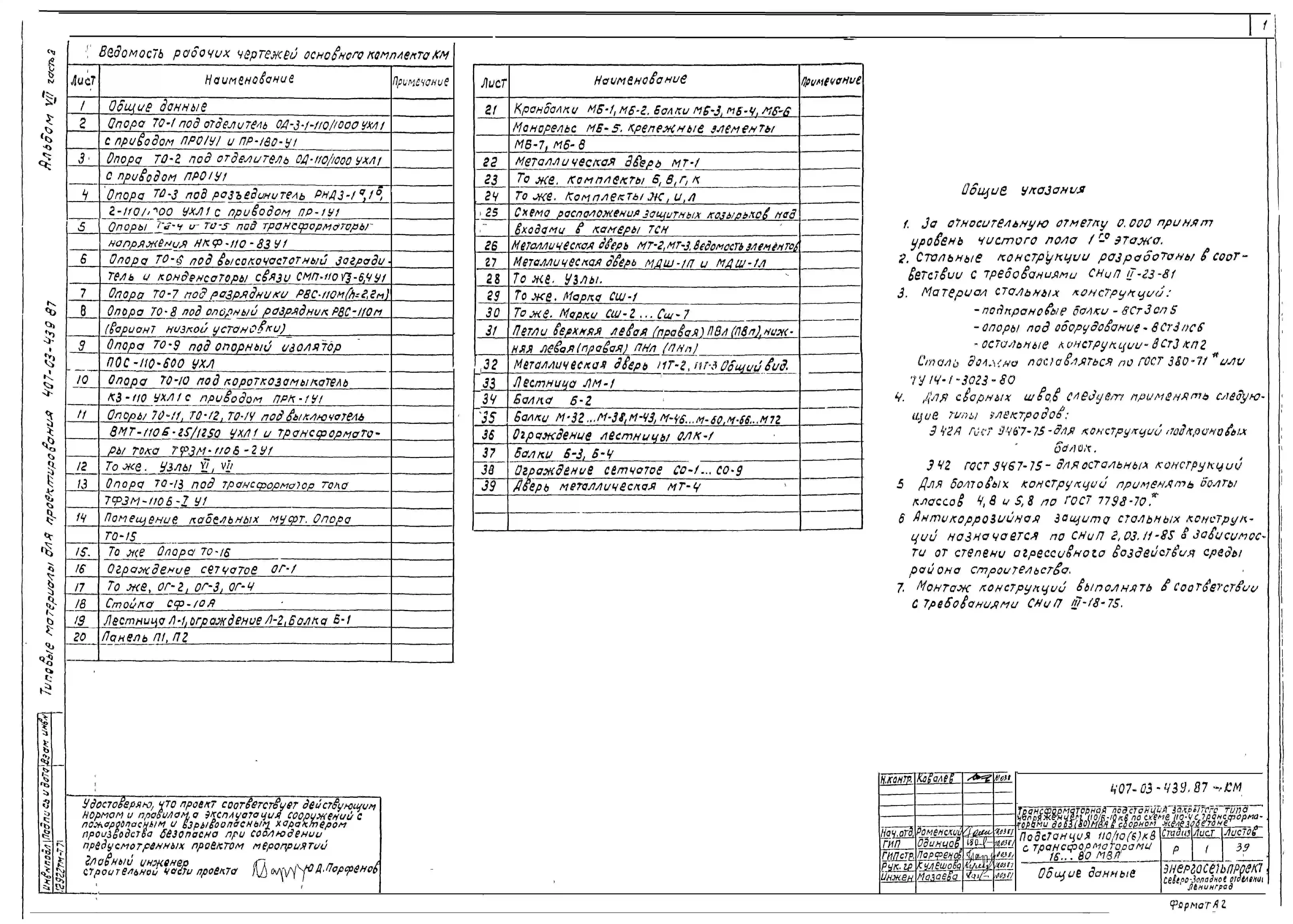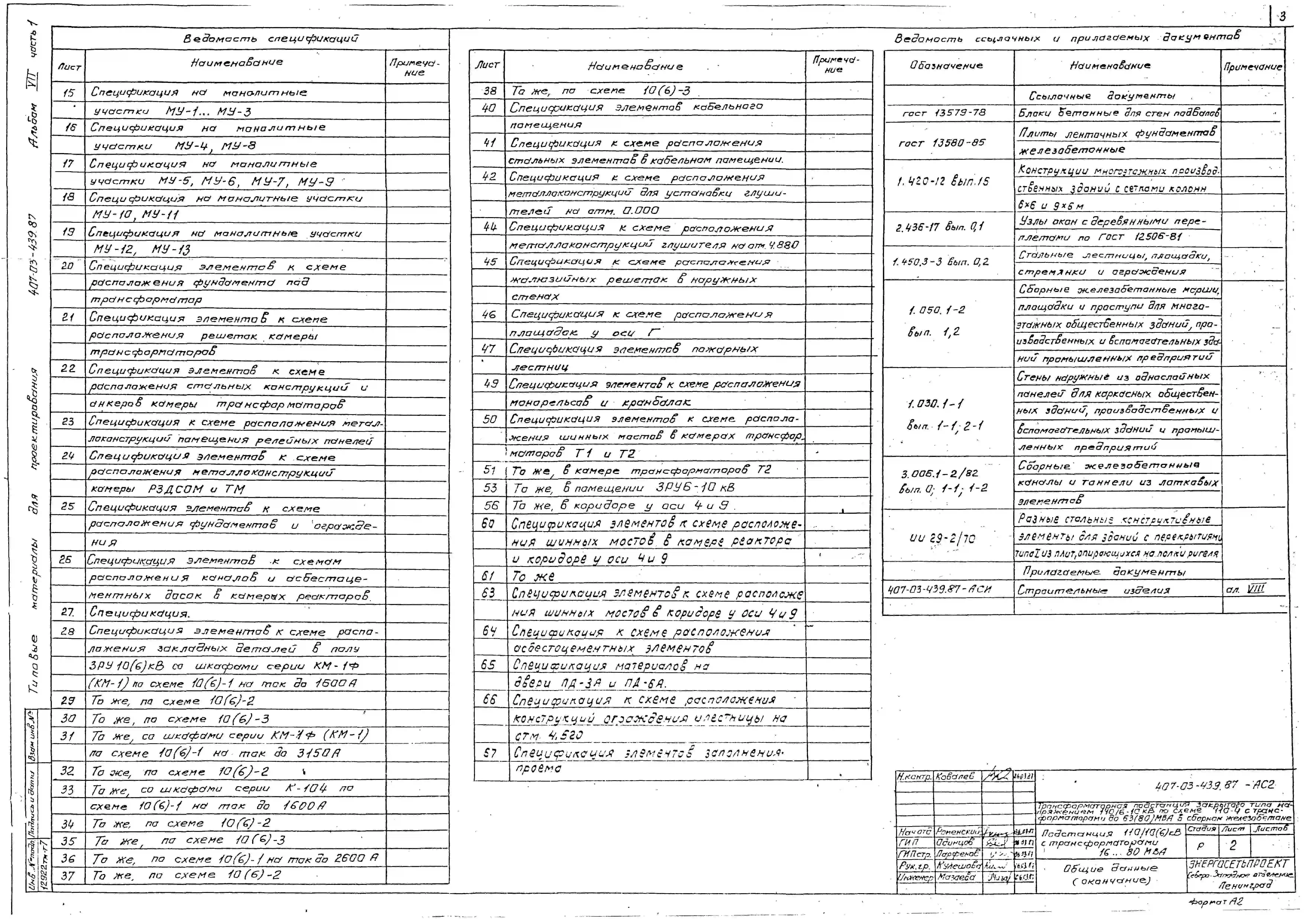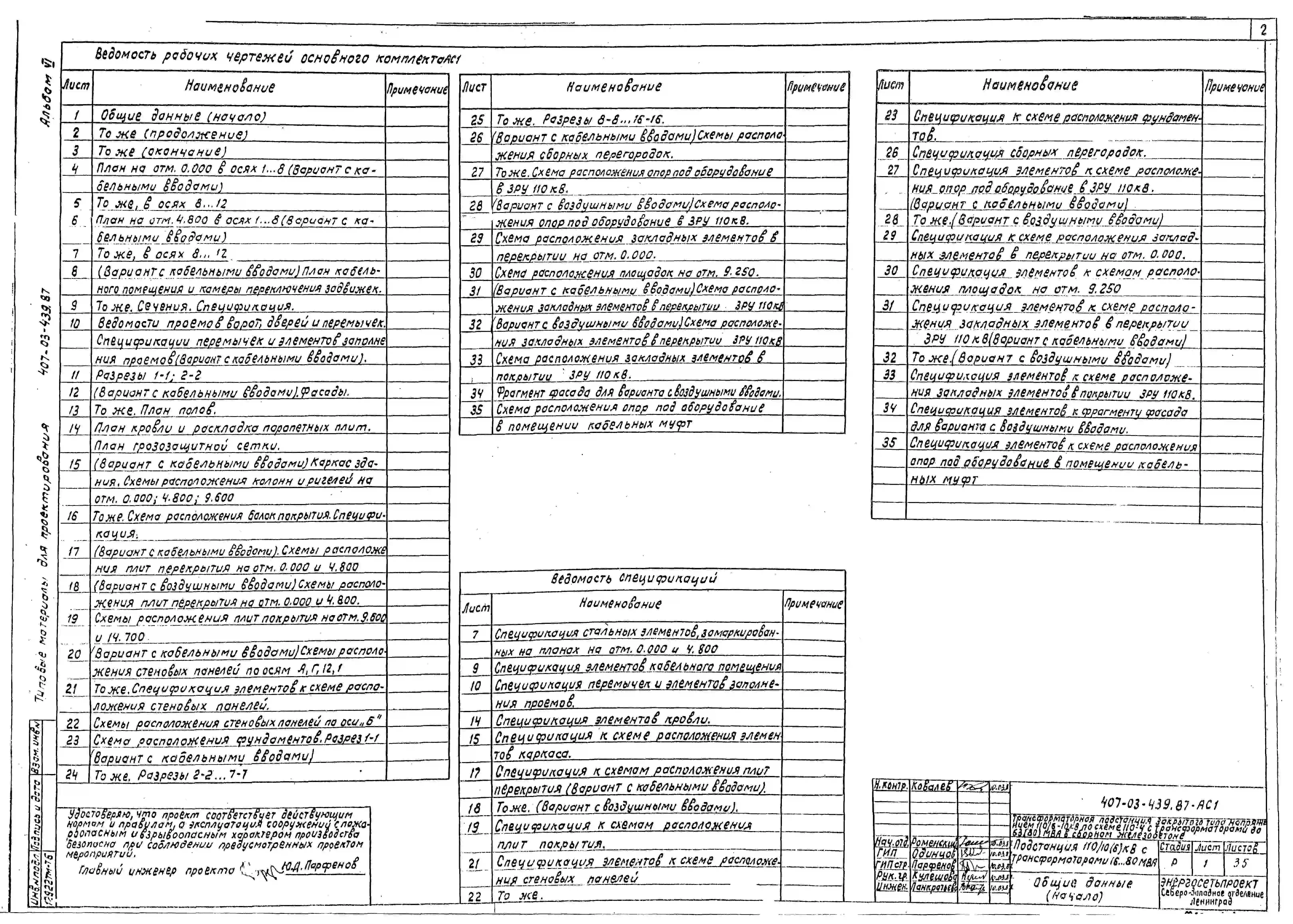 Типовой проект 407-03-439.87 МП Трансформаторная подстанция закрытого типа напряжением 110/6-10 кВ по схеме 110-4 с трансформаторами до 63(80) МВ.А в сборном железобетоне
