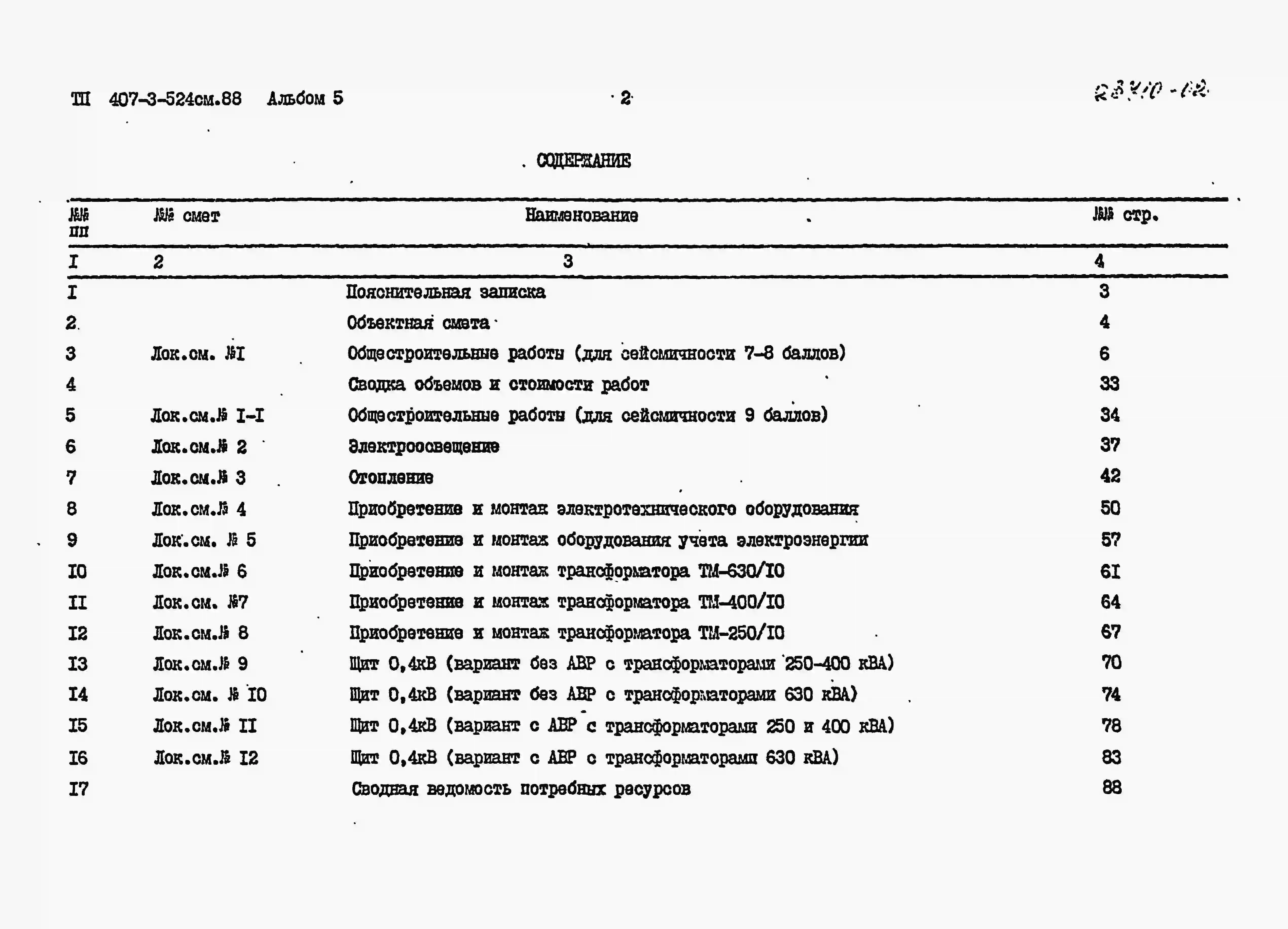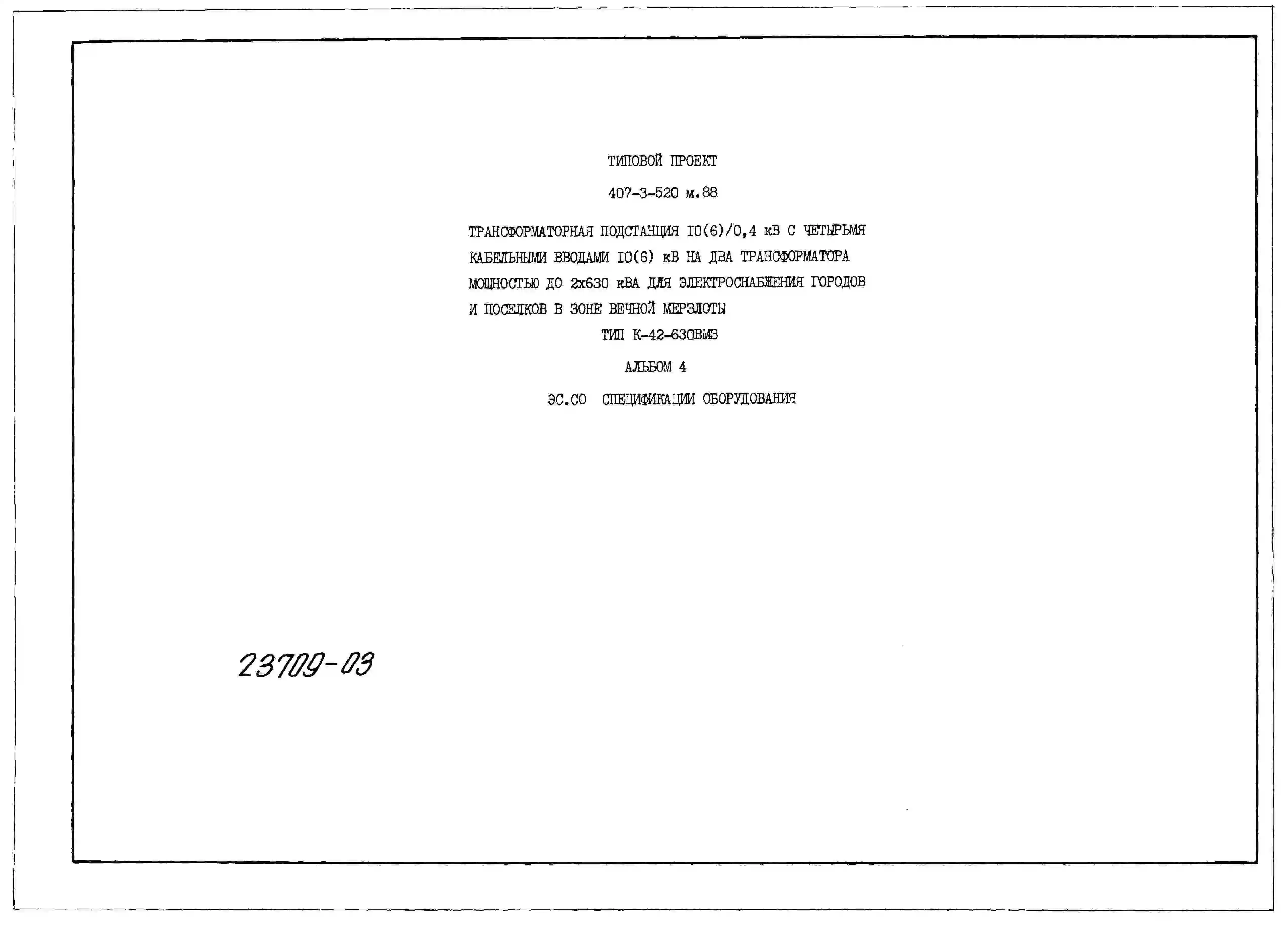 Типовой проект 407-3-524см.88 Трансформаторная подстанция 10(6)/0,4 кВ с четырьмя кабельными вводами 10(6) кВ на два трансформатора мощностью до 2x630 кВ?А для электроснабжения городов и поселков в зоне вечной мерзлоты и сейсмичности 7, 8, 9 баллов
