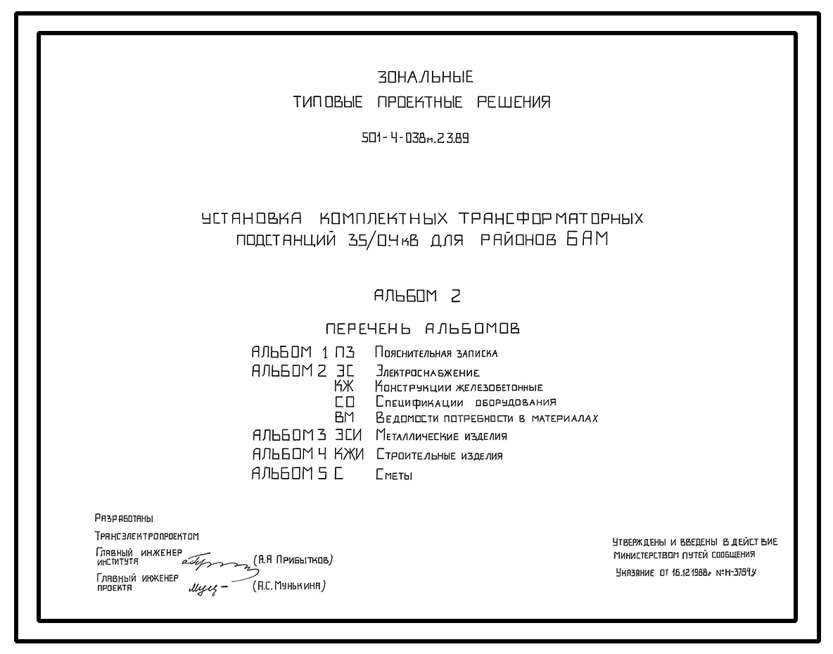 Типовой проект 501-4-038м.23.89 Установка комплектных трансформаторных подстанций 35/0,4 кВ для районов БАМ. Грунты вечномерзлые