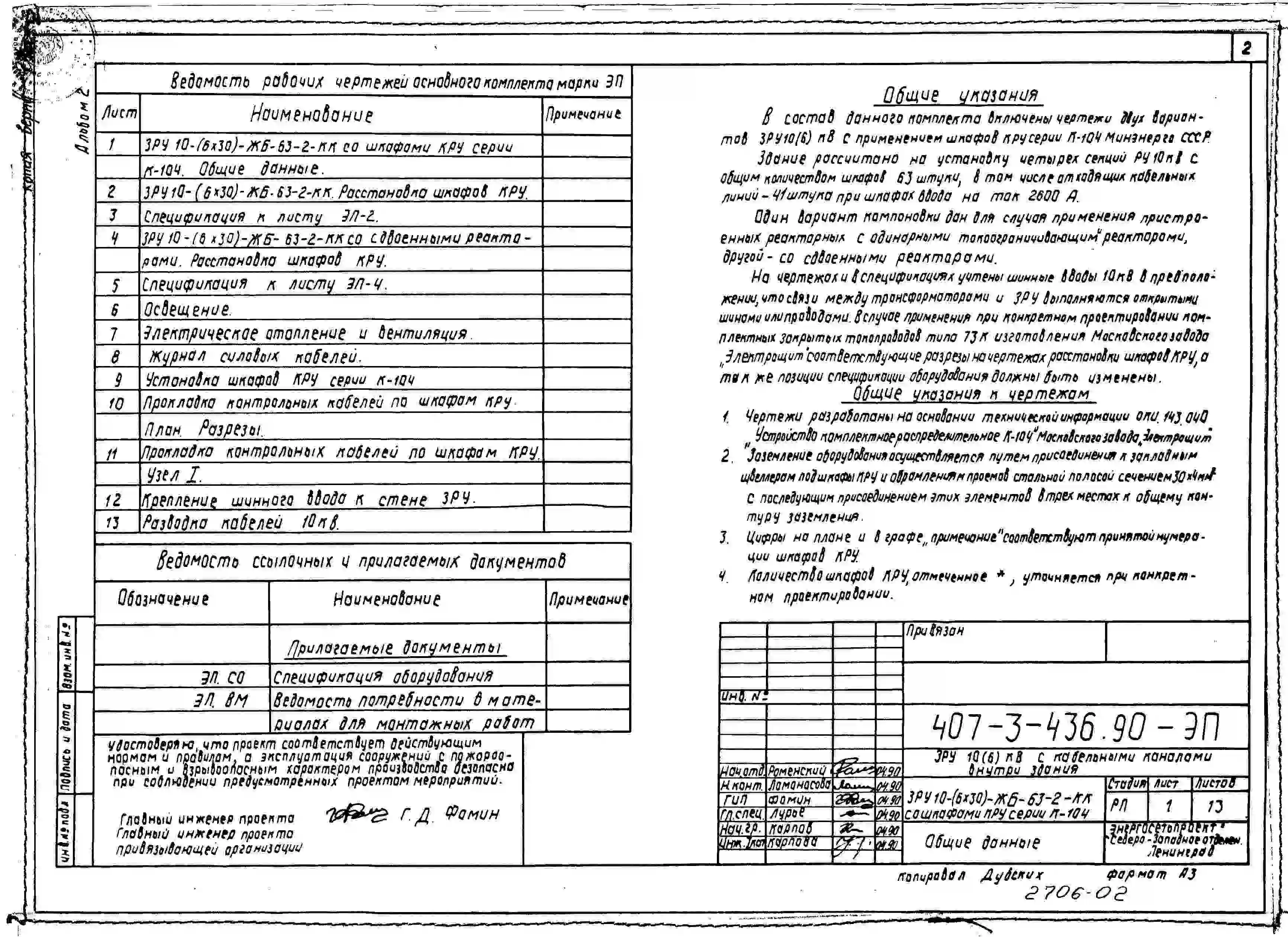 Типовой проект 407-3-436.90 Закрытые распределительные устройства 10(6) кВ с кабельными каналами внутри здания. ЗРУ 10(6х30)-ЖБ-63-2-КК
