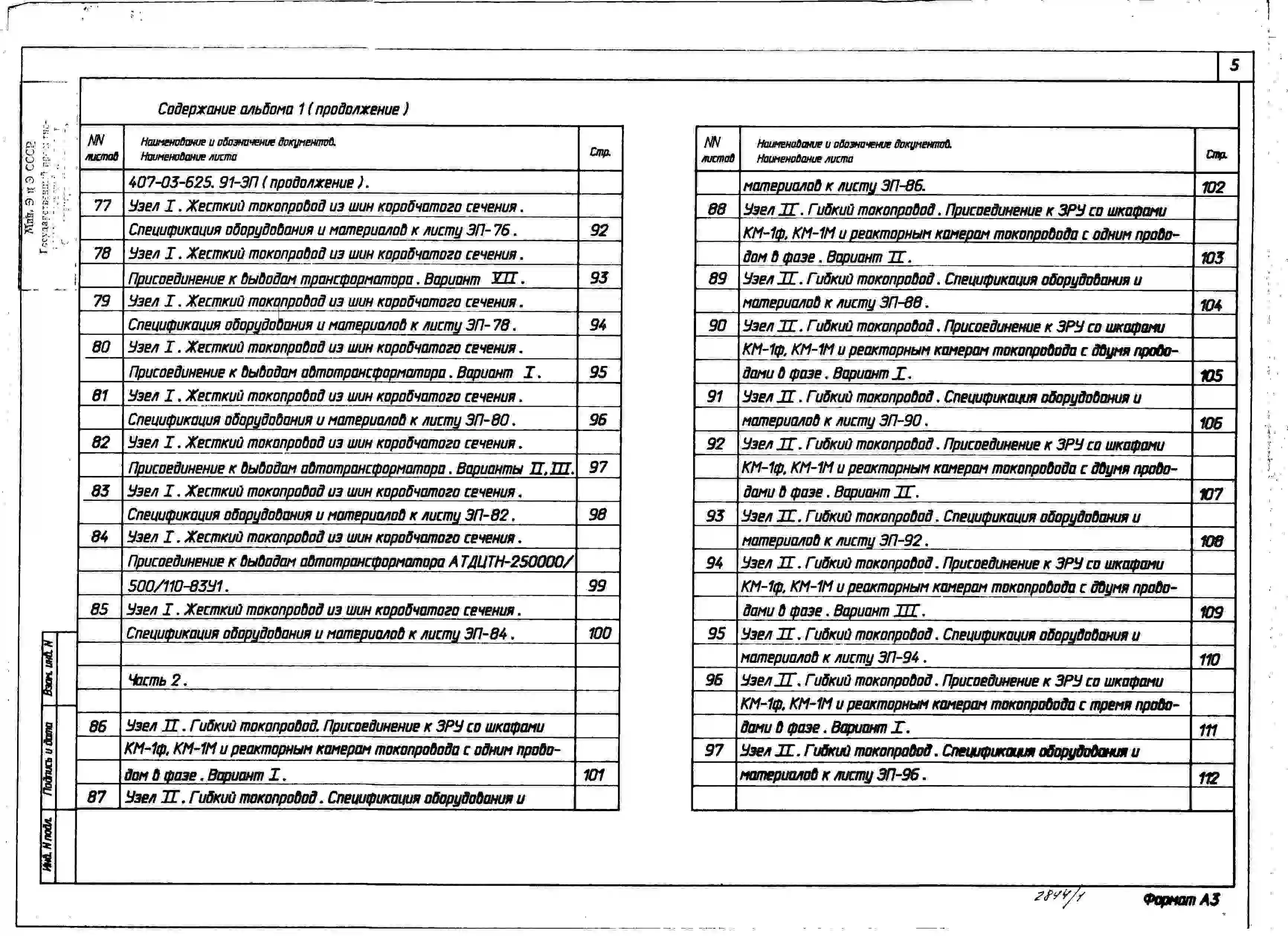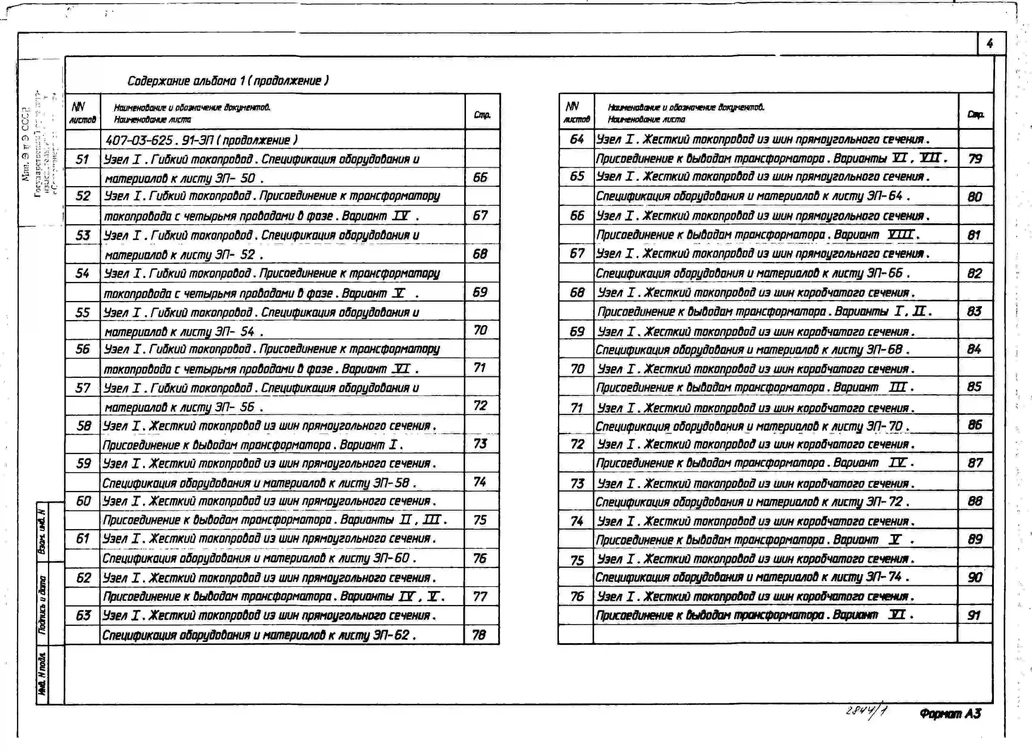 Типовой проект 407-03-625.91 Шинные мосты и гибкие связи 10(6) кВ между трансформаторами и РУ