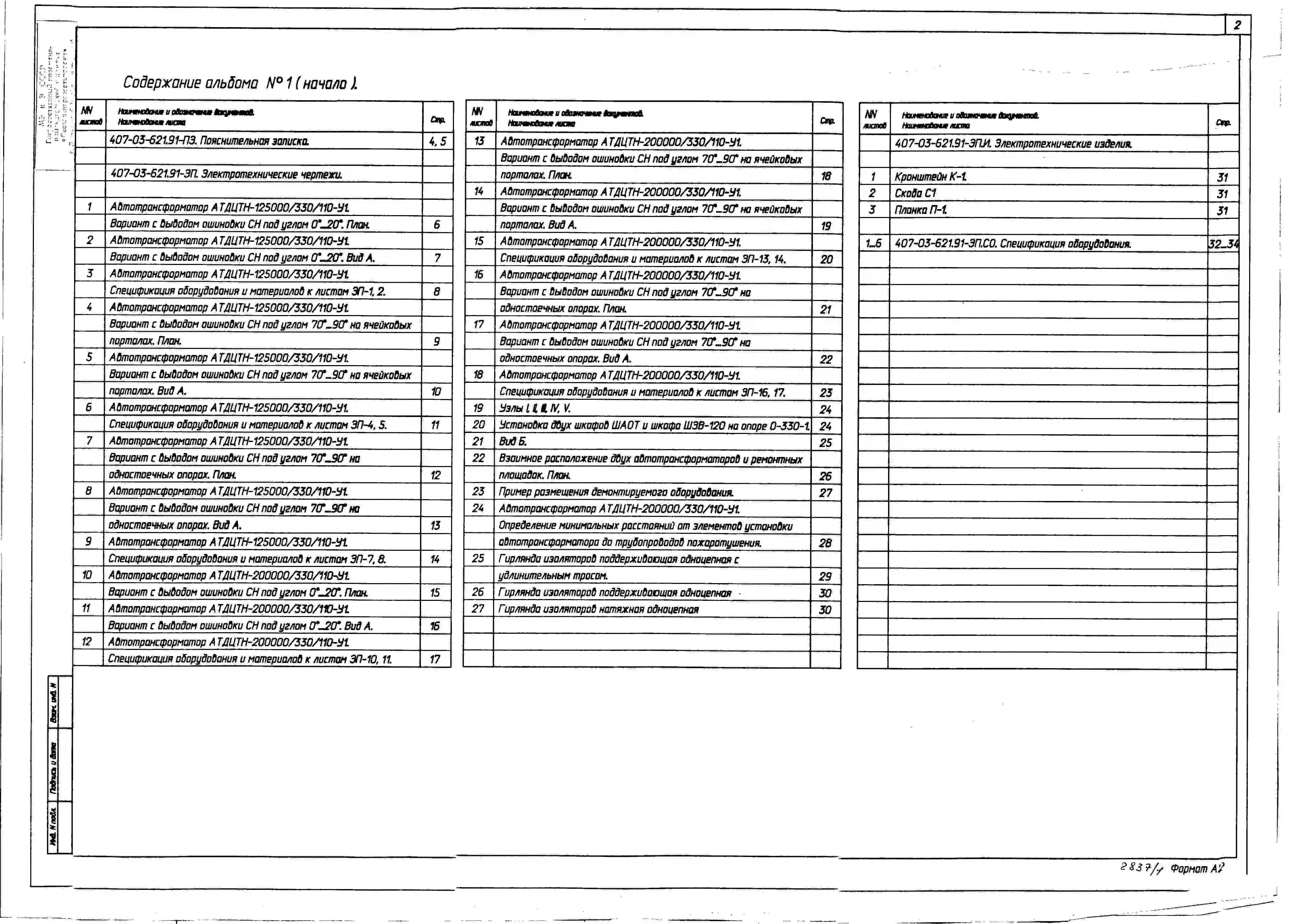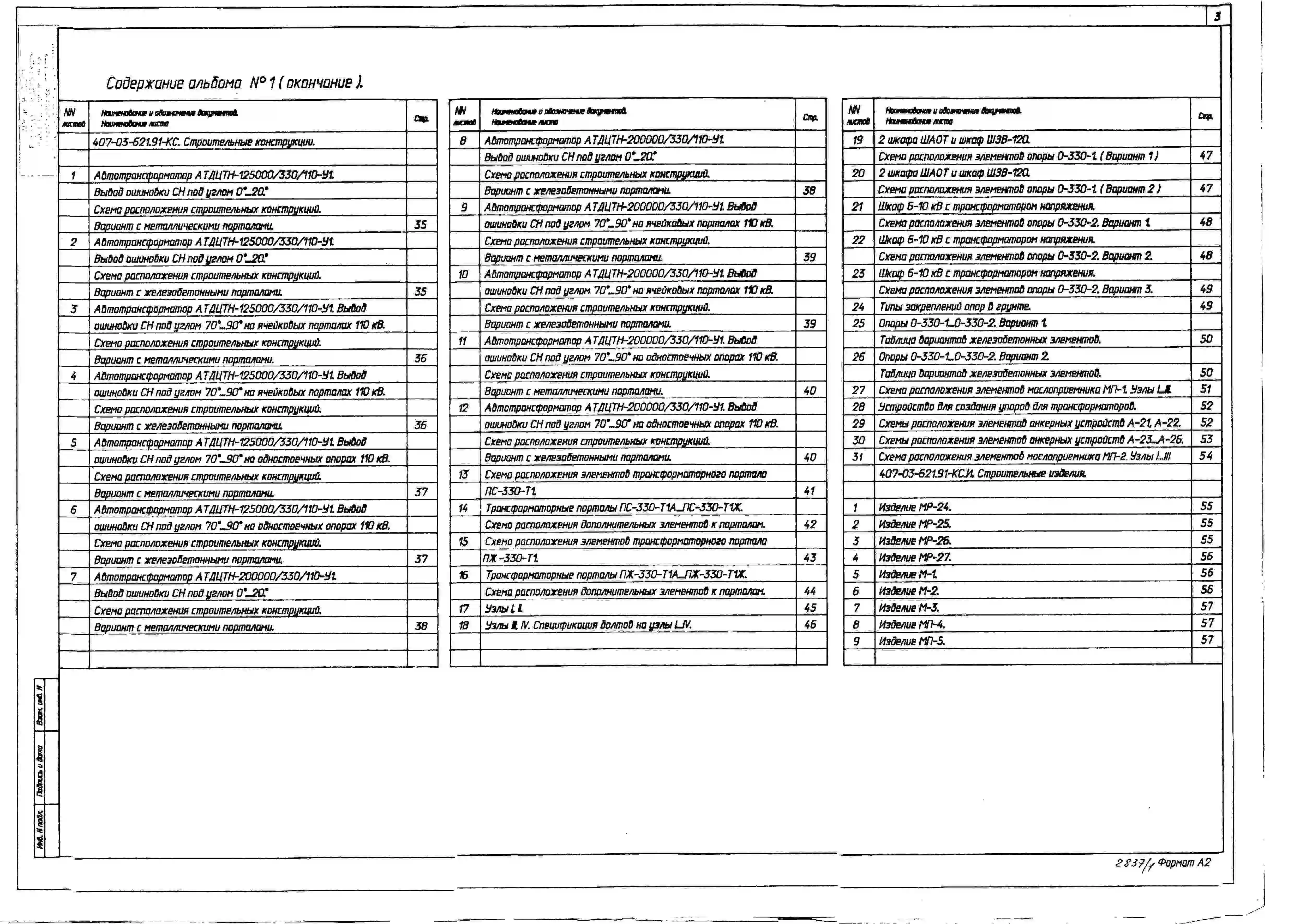 Типовой проект 407-03-621.91 Установочные чертежи трехфазных автотрансформаторов 330/110 кВ